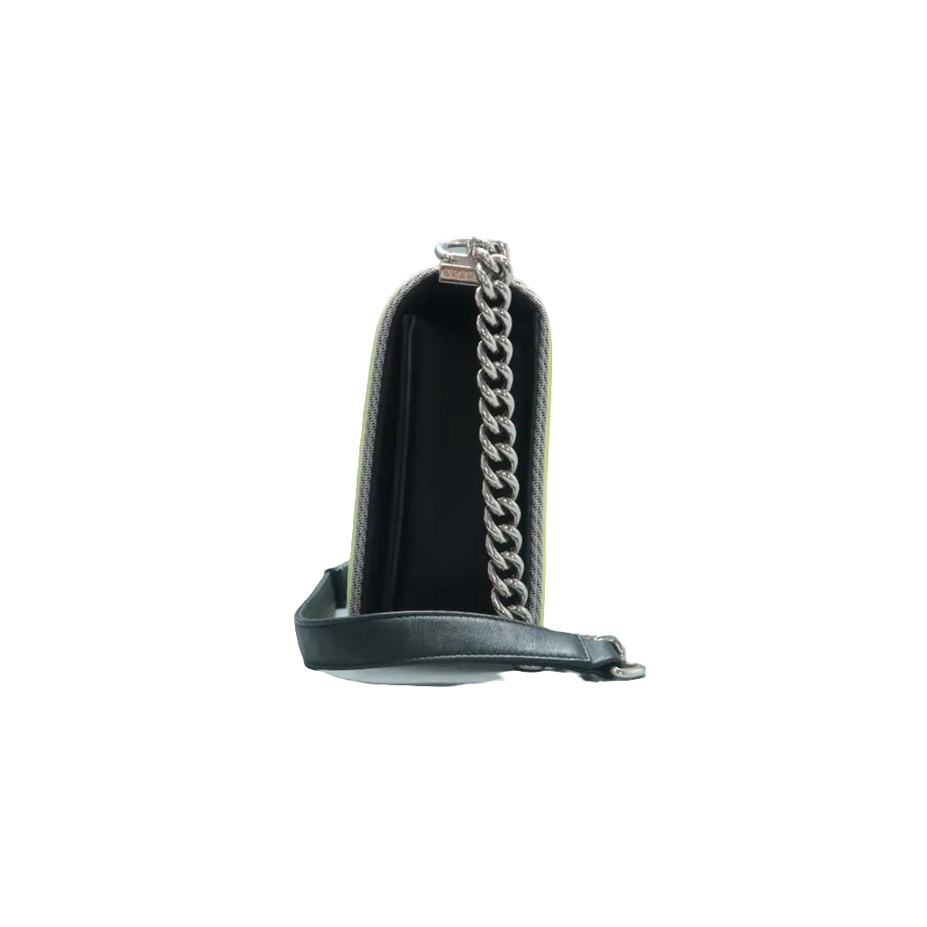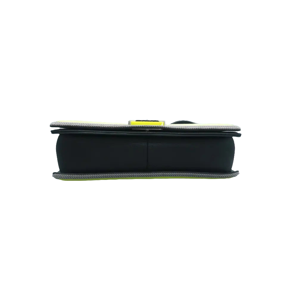 Fluo Boy Flap Canvas Quilted Medium Shoulder Bag Black Grey Yellow