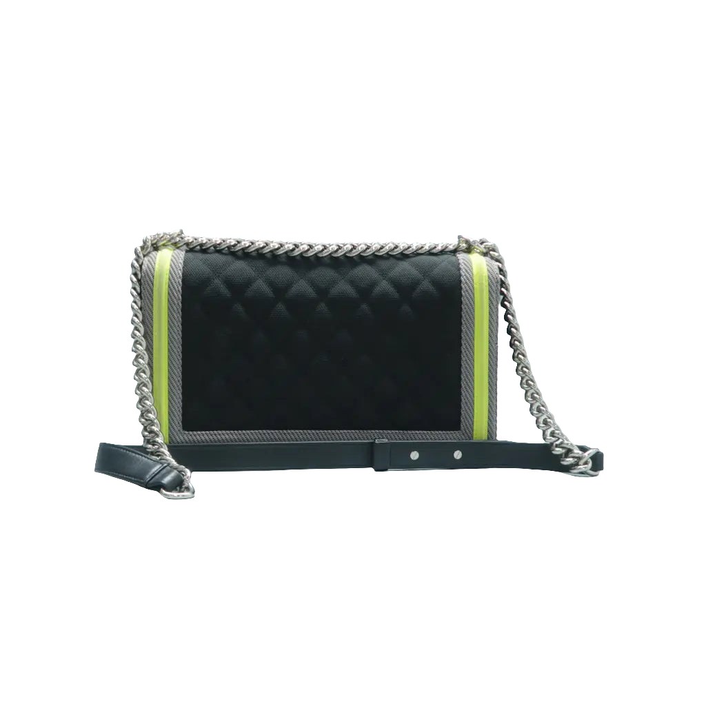 Let our smart tool help you find similar products you might like.The Chanel Fluo Boy Flap Shoulder Bag in Black, Grey, and Yellow features a bold quilted canvas design with vibrant accents, perfect for adding a modern touch to any outfit. This medium-sized bag offers both style and versatility, ideal for day-to-night wear.