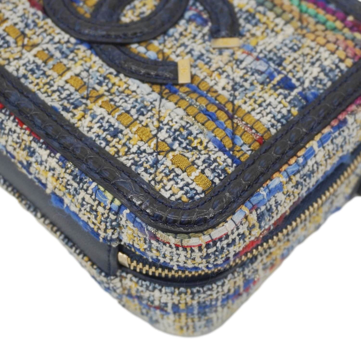 The CHANEL Filigree CC Small Vanity Case in multicolor tweed features the iconic CC logo, structured silhouette, and top handle design. Playful yet elegant, it's a standout piece with timeless Chanel charm.