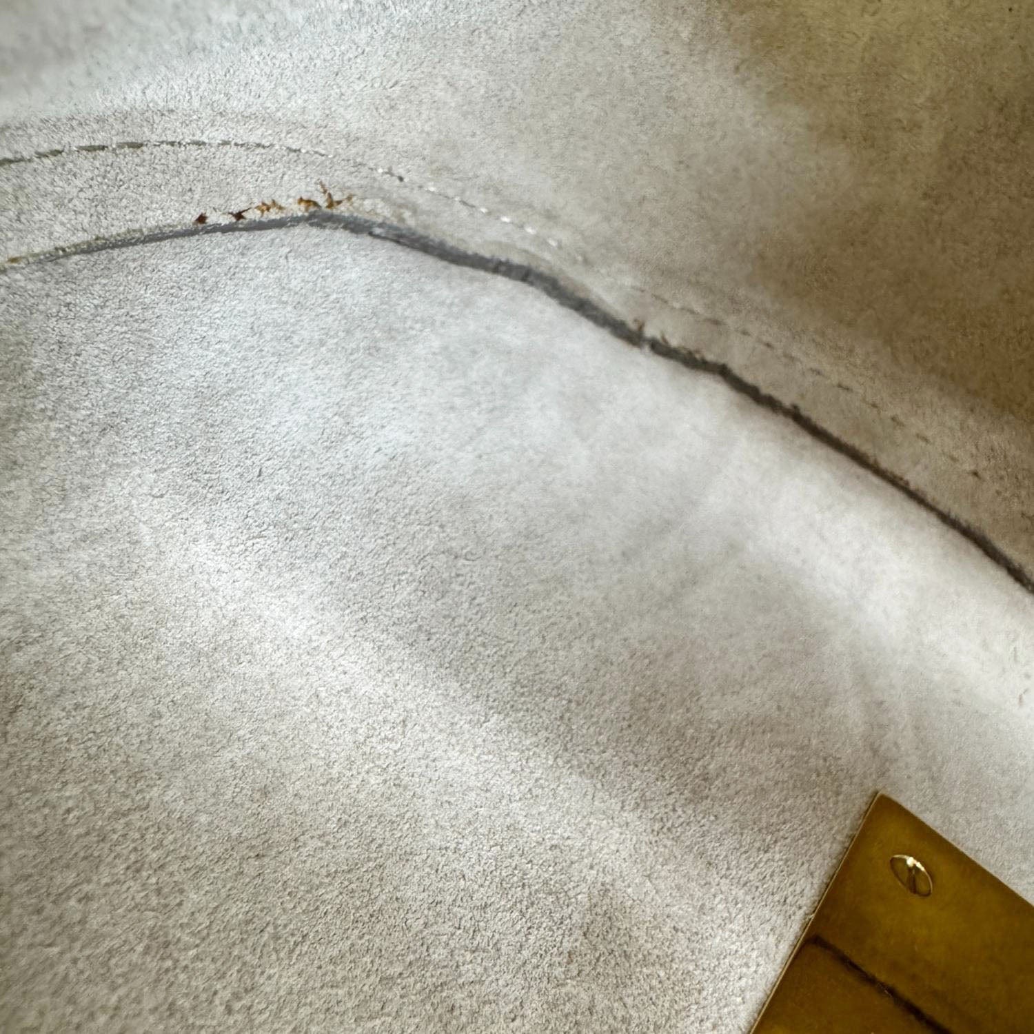 Good - The Item shows signs of use, including rubbed corners, and has some dirt marks on the interior. Its gold color hardware has light scratches and discoloration. There is no unpleasant smell within the item.