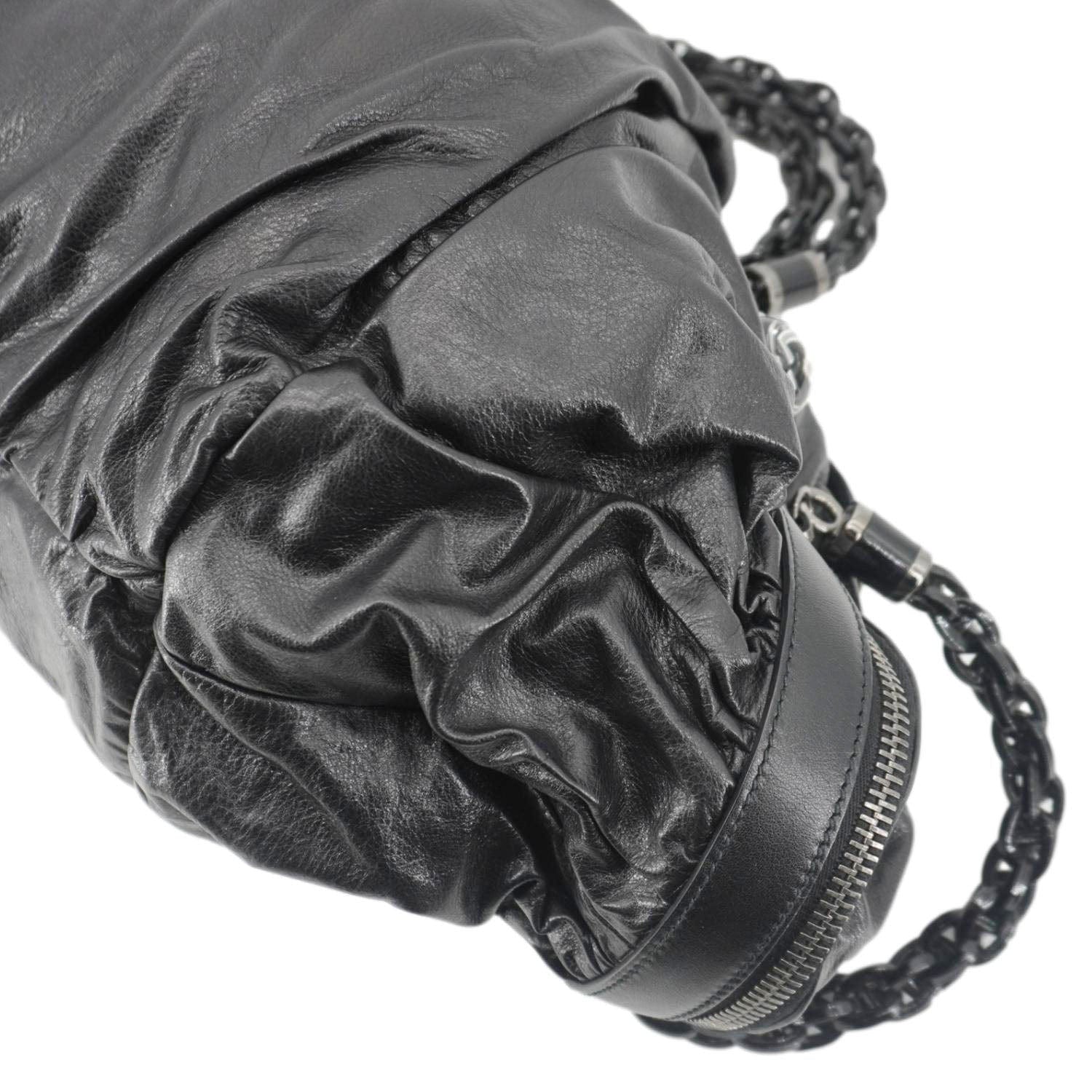 Galaxy Medium Leather Top Handle Shoulder Bag Black 228838