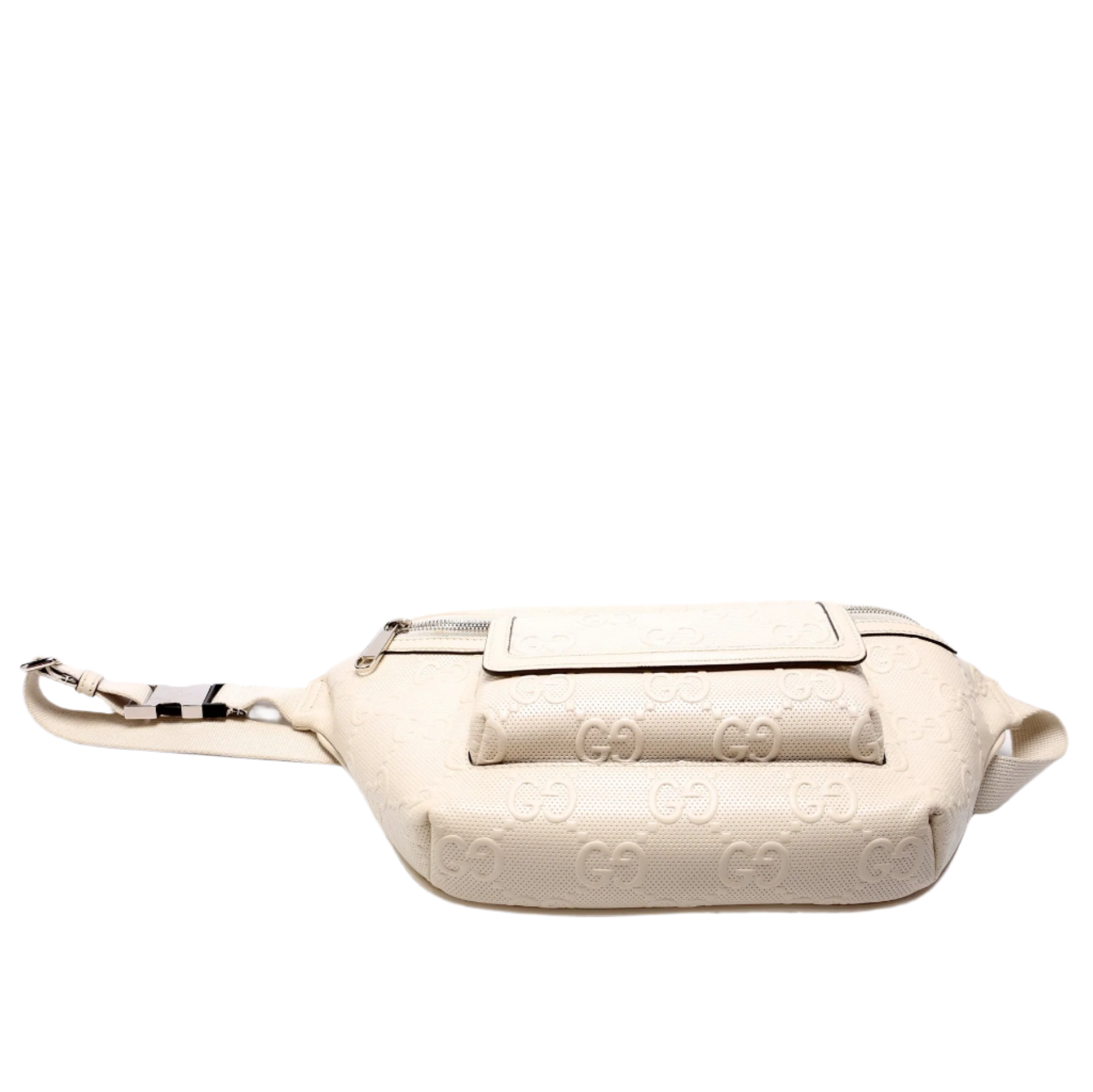 Let our smart tool help you find similar products you might like.The Gucci Embossed GG Leather Pocket Belt Bag in cream offers a sleek, hands-free design with iconic GG embossing. Its versatile, stylish structure makes it the perfect accessory for both casual and chic looks.