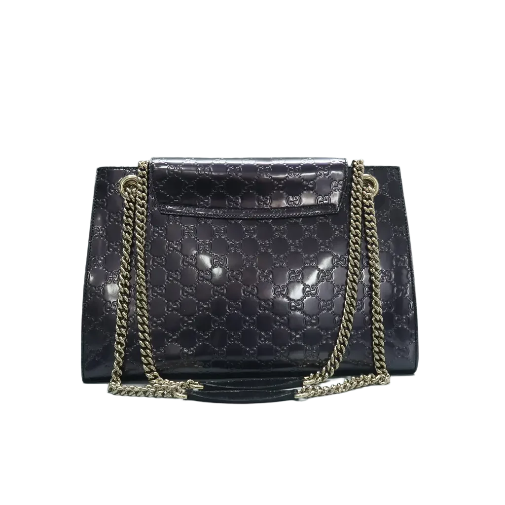 Let our smart tool help you find similar products you might like.The GUCCI Emily Patent Leather Shoulder Bag in vibrant purple offers a sleek, glossy finish with a chic and timeless design. Featuring the signature GG logo, this bag is the perfect blend of luxury and everyday style.