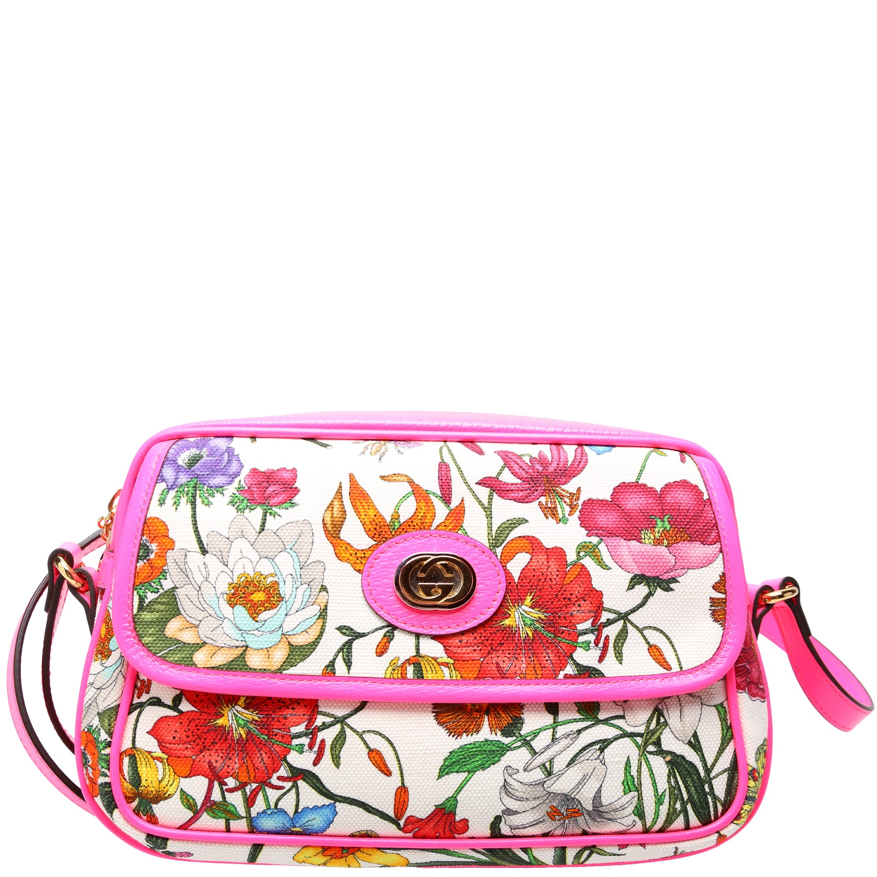 Let our smart tool help you find similar products you might like."Designed with the iconic Gucci Flora print, the Gucci Flora Canvas Crossbody Bag in multicolor offers a vibrant, stylish touch to any outfit. Its compact size and adjustable strap make it a practical and chic accessory for everyday wear."