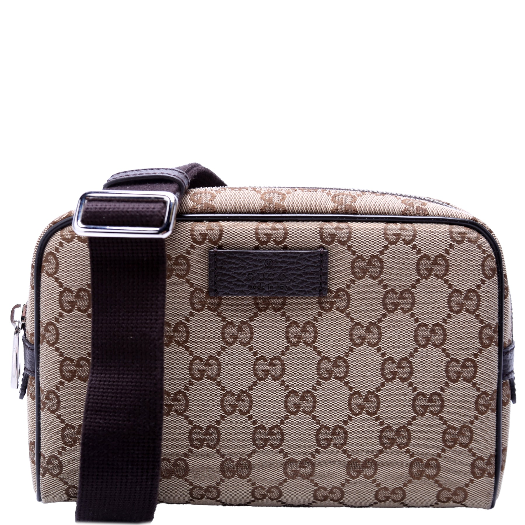 Let our smart tool help you find similar products you might like.The Gucci GG Canvas Belt Bag in beige features the iconic GG monogram and a versatile design that can be worn around the waist or crossbody. This stylish piece combines practicality with luxury, offering both functionality and elegance.