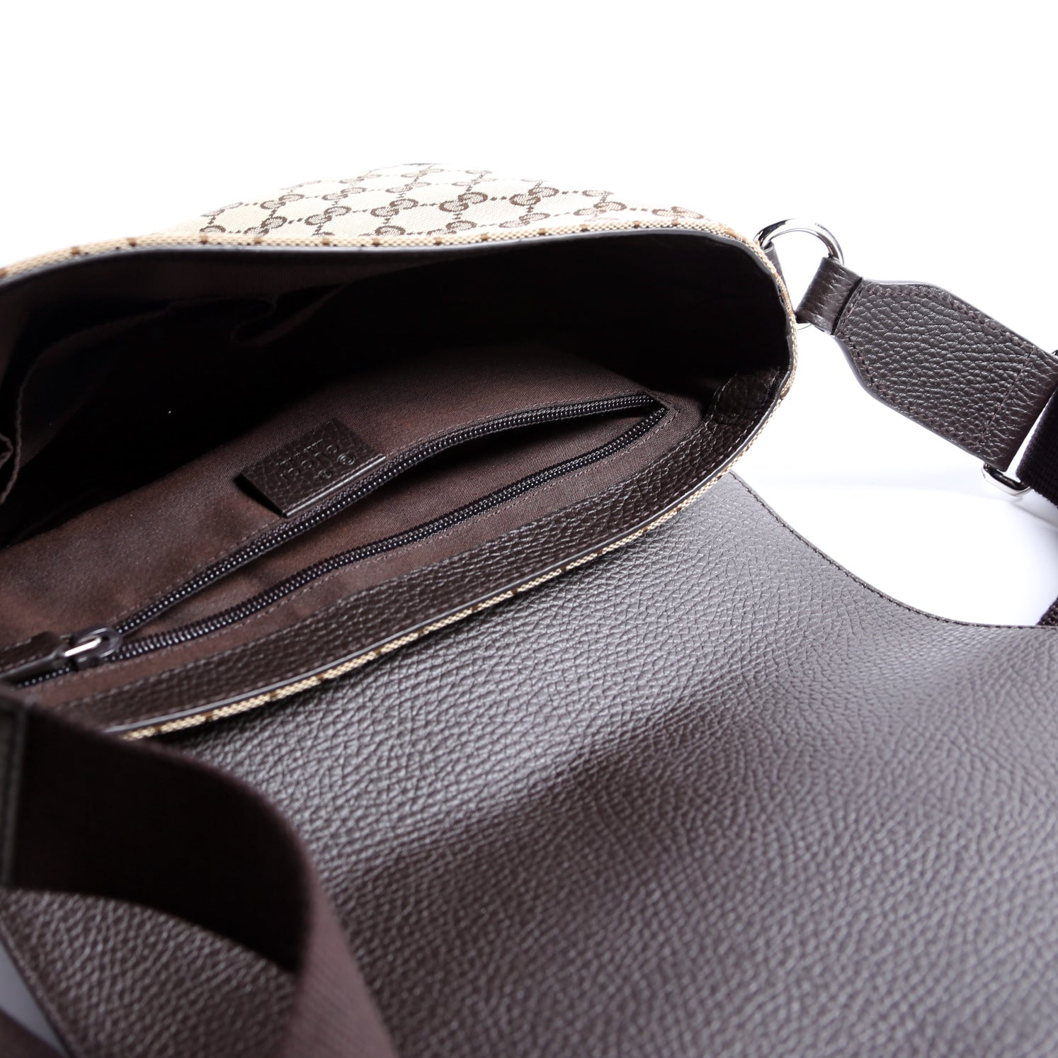 Let our smart tool help you find similar products you might like.This Gucci GG Canvas messenger bag is crafted in brown canvas with the signature GG pattern, offering a classic and durable design. Its versatile style and spacious interior make it a practical yet stylish accessory for everyday use.