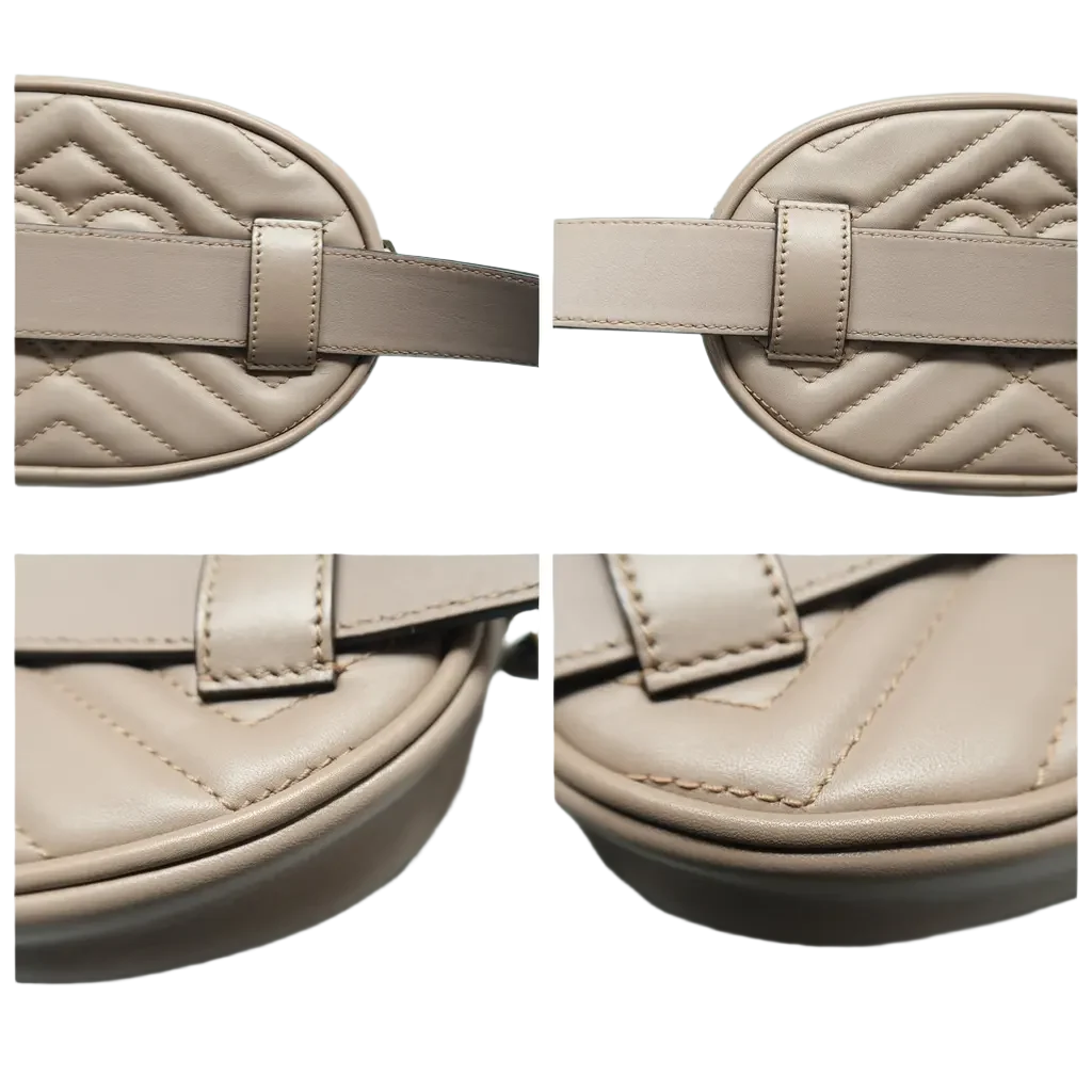 Let our smart tool help you find similar products you might like.Elevate your style with the Gucci GG Marmont Belt Bag in beige leather, featuring the iconic GG logo and a versatile, hands-free design. Perfect for adding a touch of luxury to any outfit, this timeless piece combines functionality with high-end fashion.