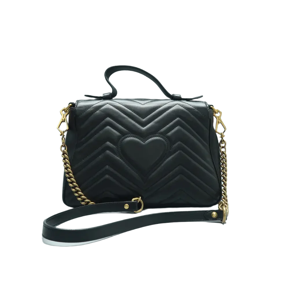 Let our smart tool help you find similar products you might like.The GUCCI GG Marmont Leather Satchel Bag in black features the brand's signature GG logo and soft, quilted leather, offering both style and sophistication. A versatile piece that complements any wardrobe with its timeless design.