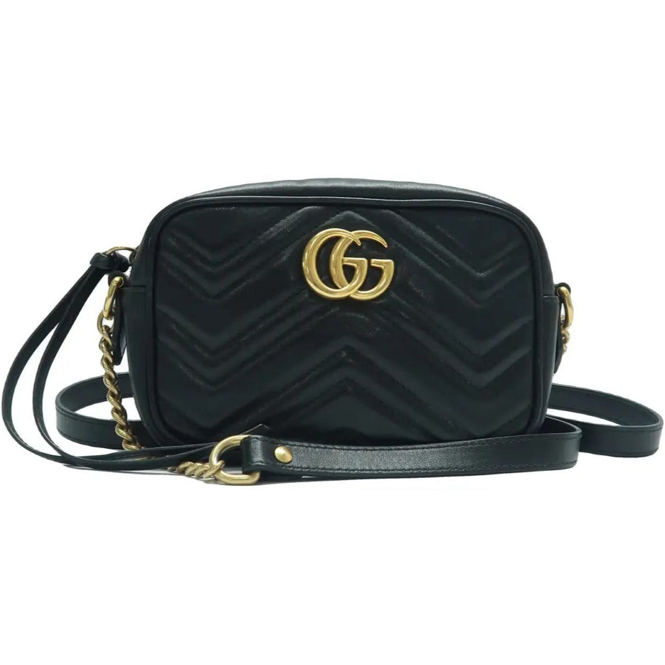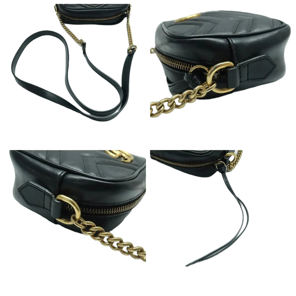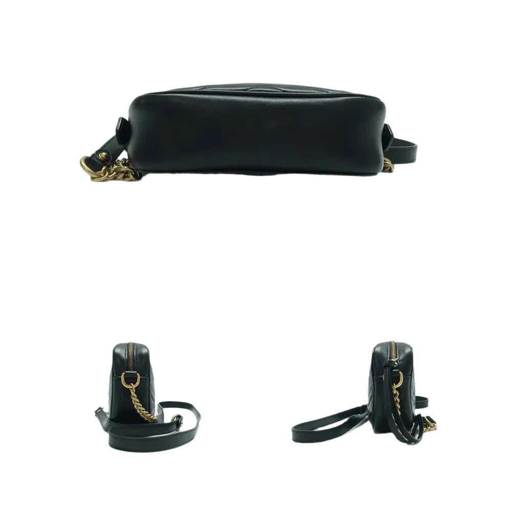 Let our smart tool help you find similar products you might like.Crafted from soft black leather, the GUCCI GG Marmont Shoulder Bag features the iconic GG logo for a luxurious touch. Its chic design and adjustable chain strap make it a versatile accessory for any occasion