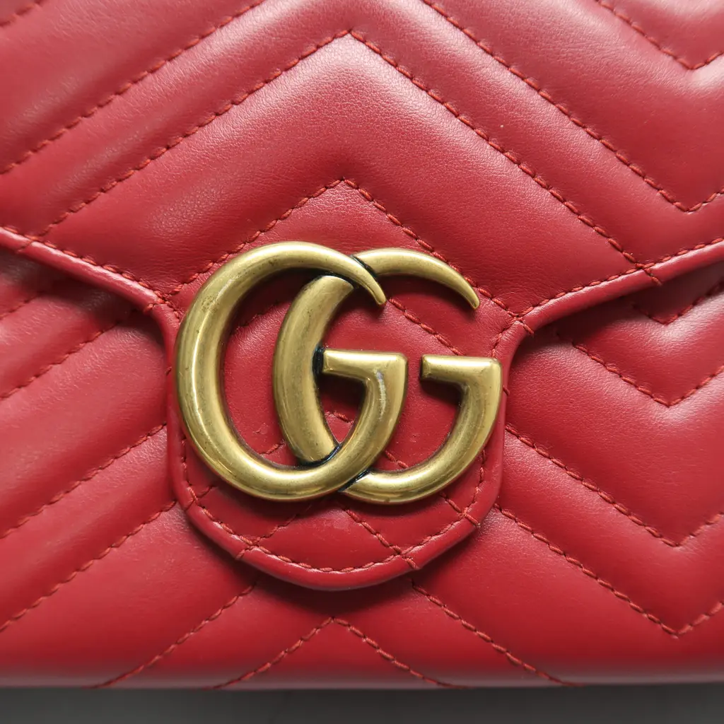 Let our smart tool help you find similar products you might like."Add a bold pop of color with the Gucci GG Marmont Leather Shoulder Bag in striking red. Featuring the iconic GG hardware, this luxurious piece combines sophistication with everyday functionality."