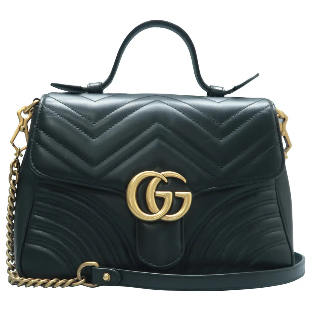 Let our smart tool help you find similar products you might like.The GUCCI GG Marmont Top Handle Crossbody Bag in Blue features the iconic diagonal canvas. It has a versatile top handle and a detachable chain shoulder strap for easy crossbody wear.