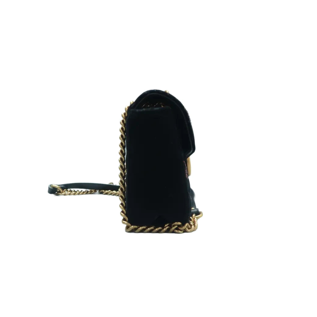 GG Marmont Velvet Matelasse Crystal Sequin Heart Embroidered Shoulder Bag Black