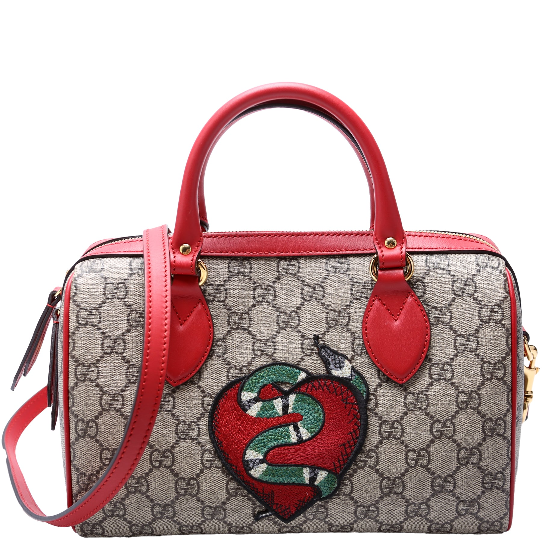 Let our smart tool help you find similar products you might like.Crafted from iconic GG Supreme canvas the Gucci Boston Bag in beige showcases a bold Kingsnake embellishment for a fierce yet elegant touch. This spacious bag effortlessly combines luxury and style for a standout accessory.