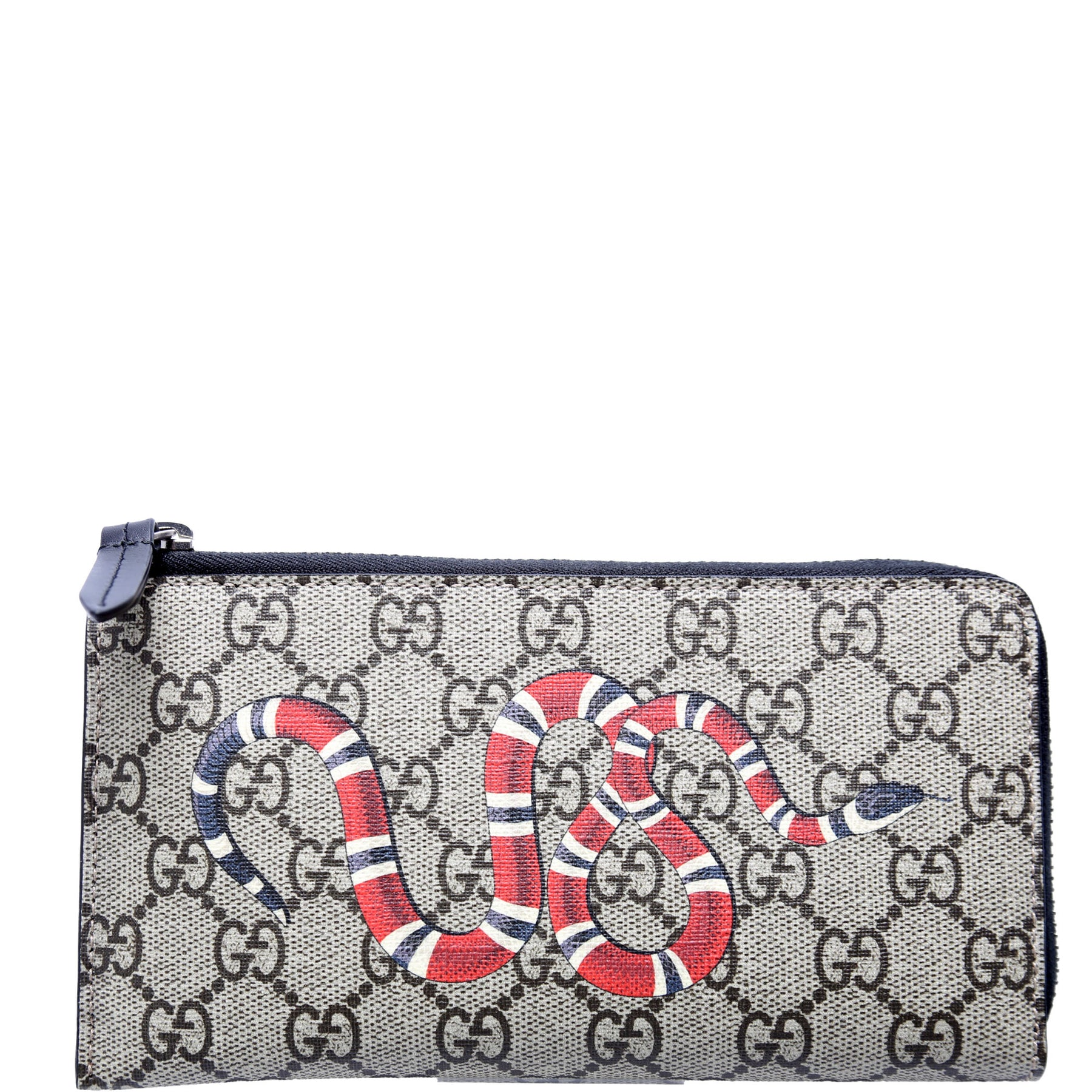 Let our smart tool help you find similar products you might like.The Gucci GG Supreme Coated Canvas Kingsnake L-Zip Wallet in tan features the iconic GG Supreme pattern with a bold Kingsnake design. This pre-loved wallet offers a stylish and functional accessory, combining luxury and practicality for everyday use.