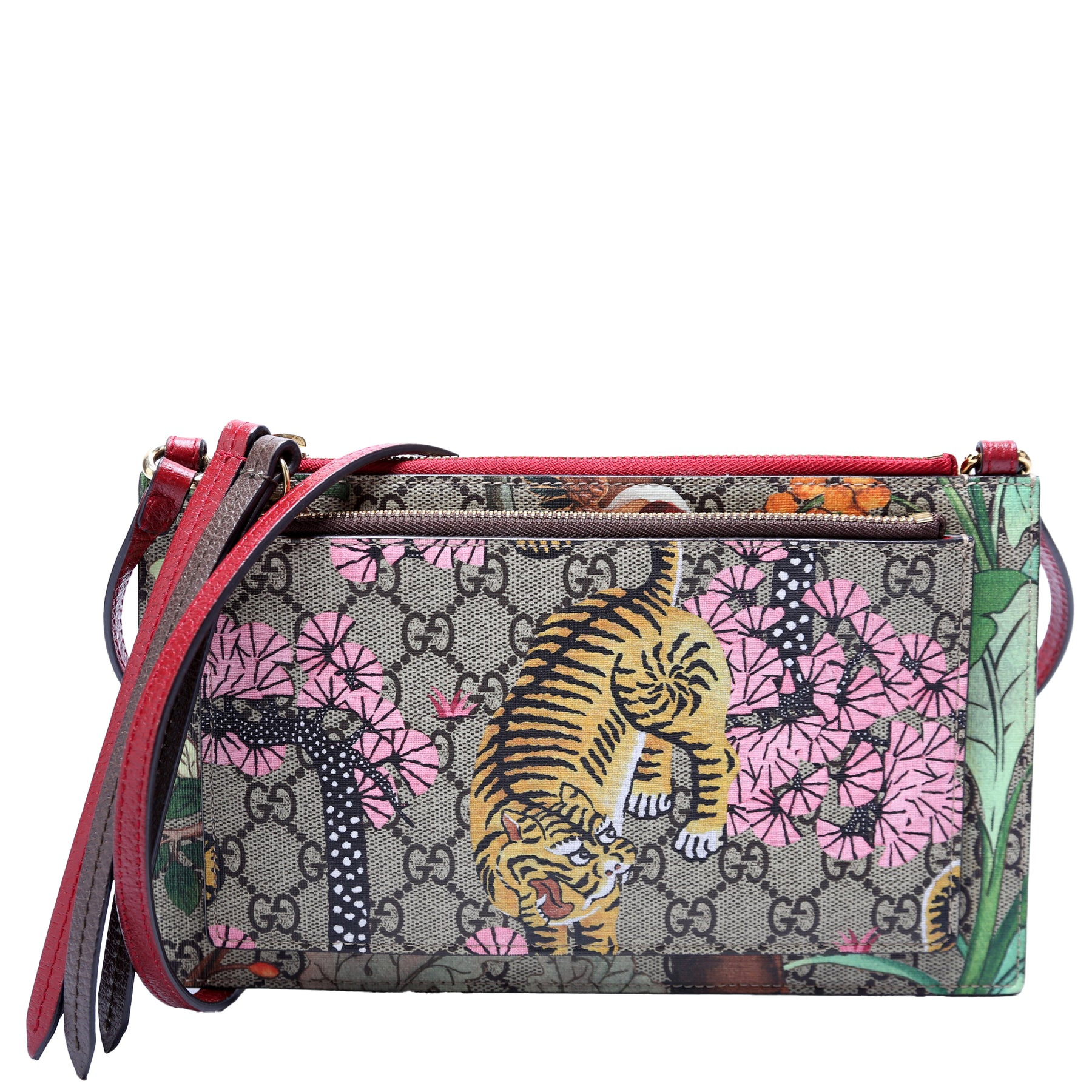 Let our smart tool help you find similar products you might like.The Gucci GG Supreme Tian/Bengal Canvas Double Zip Shoulder Bag features a vibrant multicolor design with the signature GG Supreme monogram and playful tiger and floral prints. A bold and stylish accessory, perfect for adding a unique touch of luxury to any outfit.