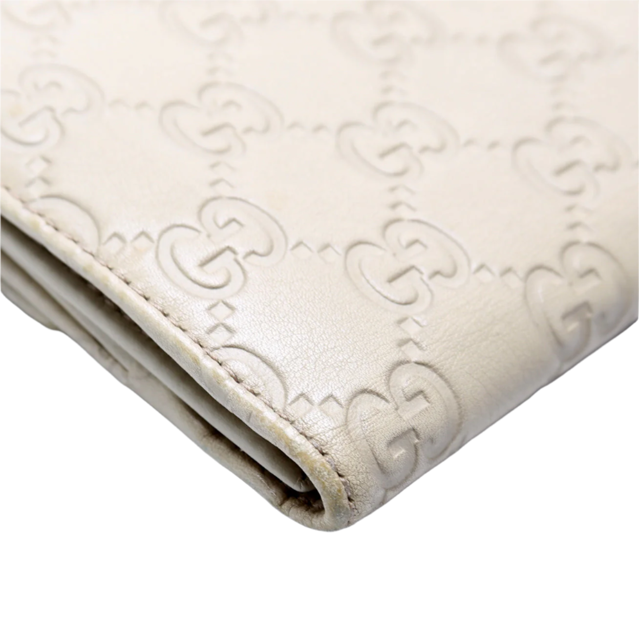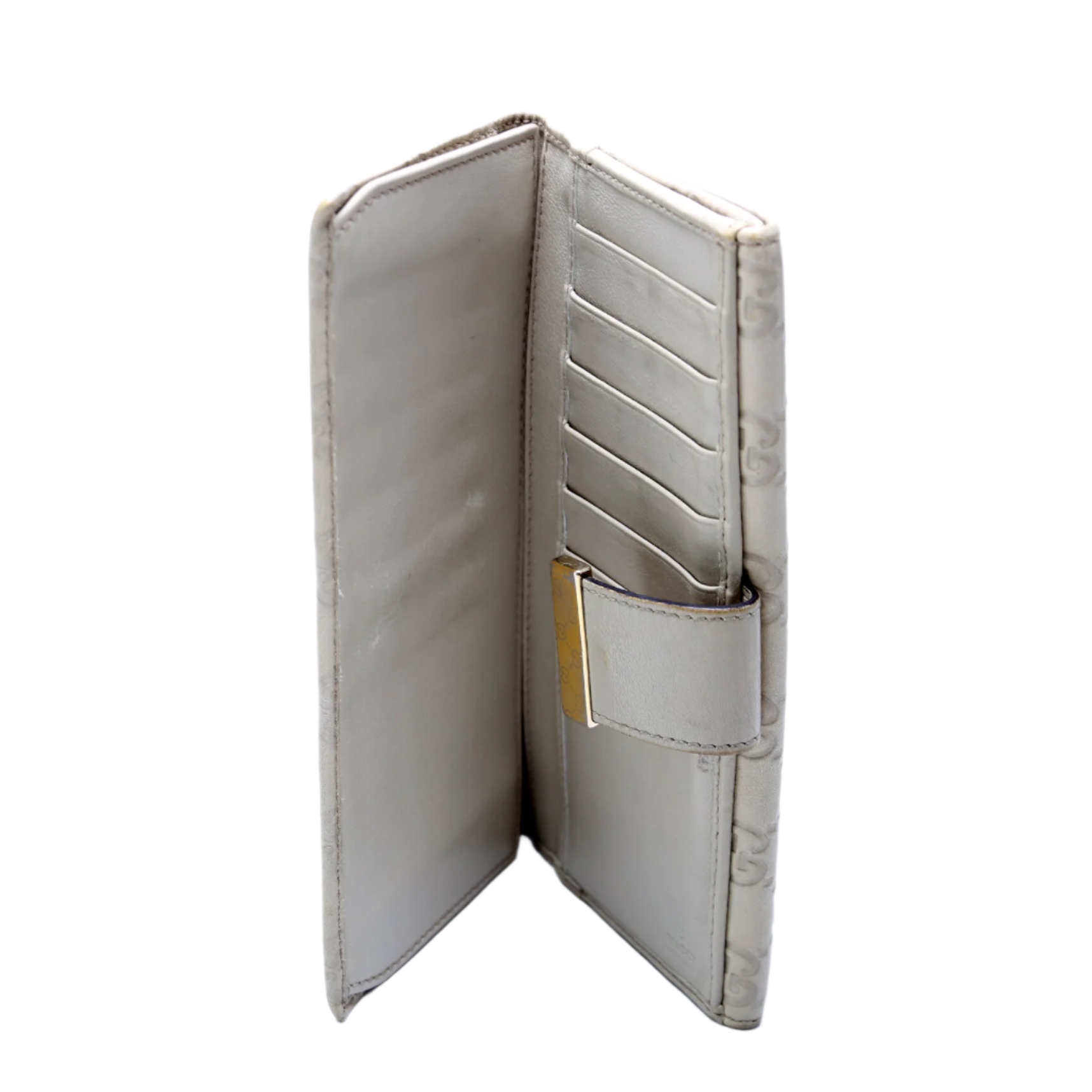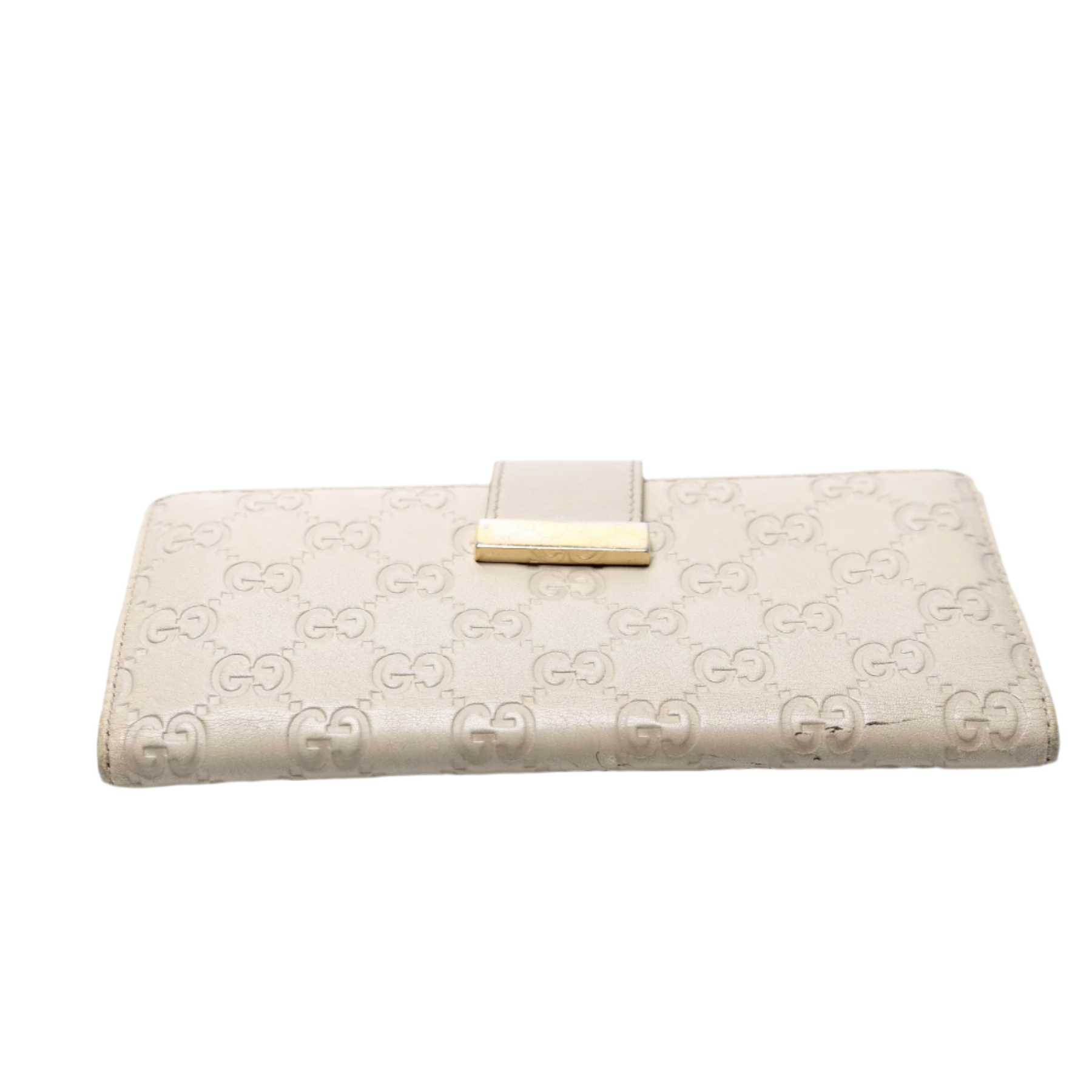 Let our smart tool help you find similar products you might like.The Gucci Guccissima Leather Long Wallet in Cream features the brand's signature embossed leather, offering a sophisticated and timeless design. This elegant wallet provides ample space with multiple compartments for organization and style.