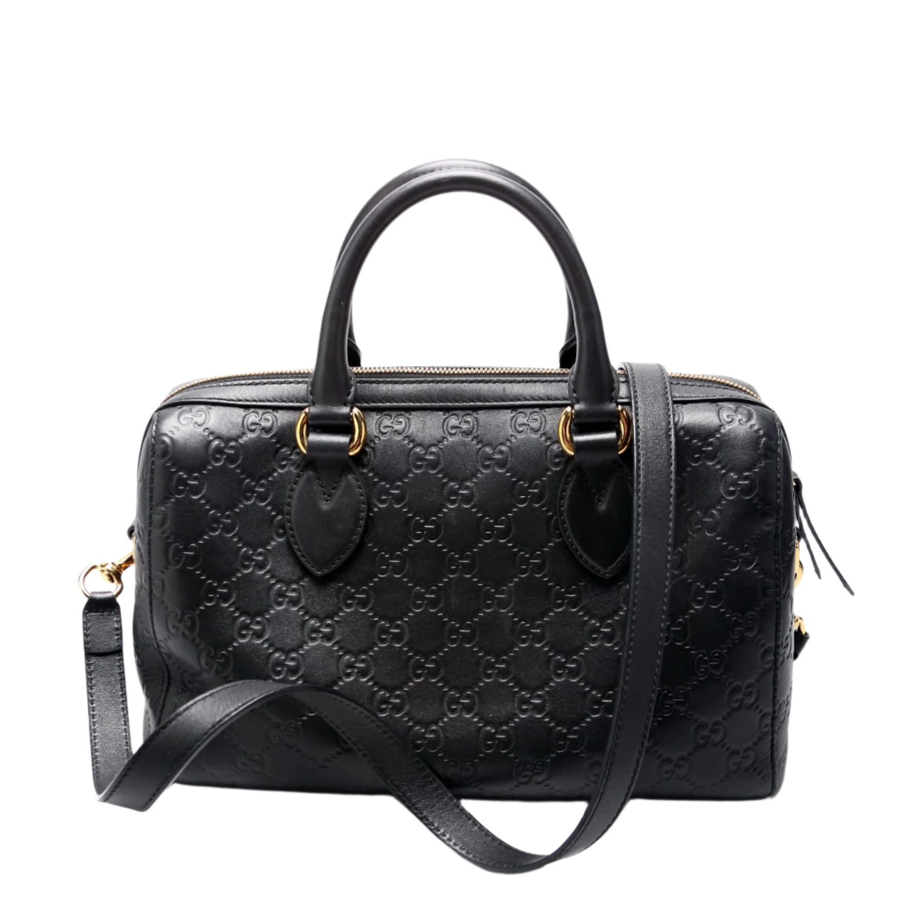 Let our smart tool help you find similar products you might like.This Gucci Guccissima Leather Boston Bag in black combines timeless elegance with functional design. Crafted from luxurious leather, it offers a spacious interior and a sophisticated aesthetic, perfect for any occasion.