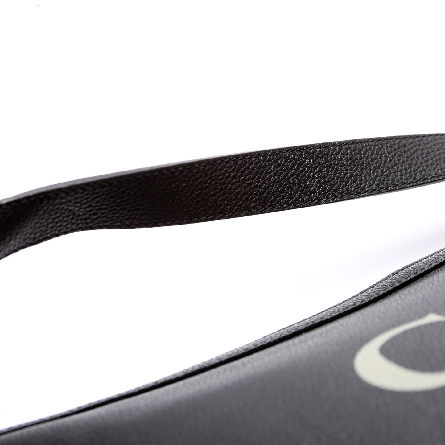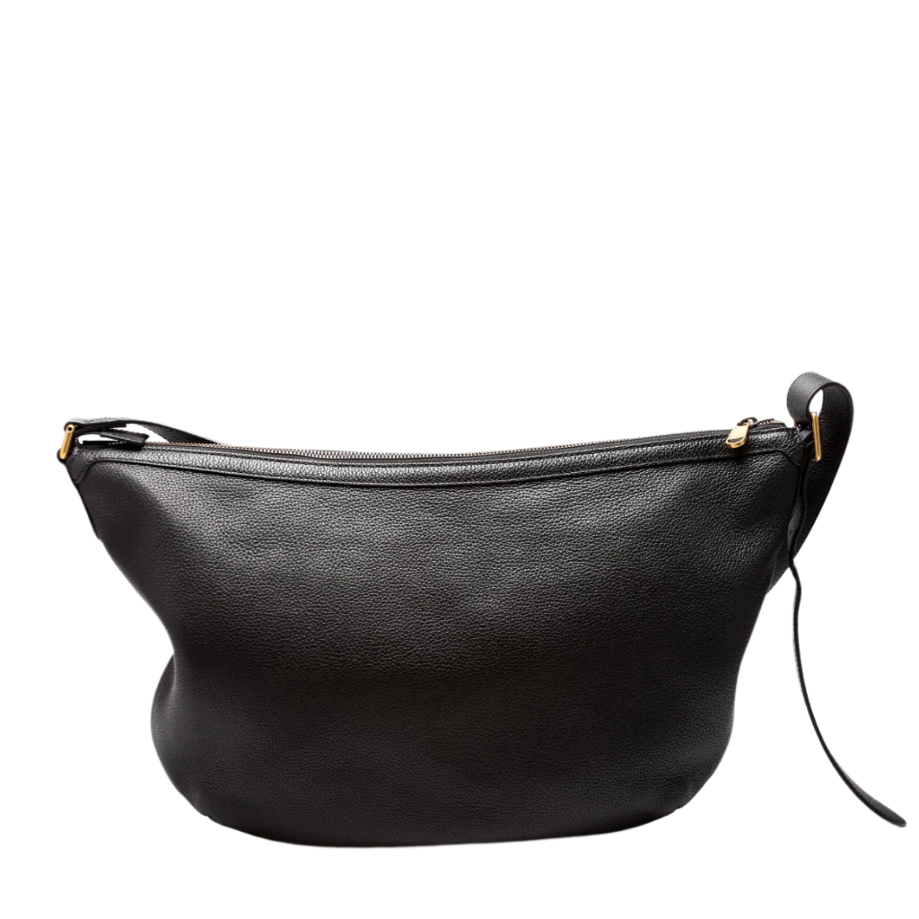 Half Moon Logo Calfskin Leather Shoulder Bag Black
