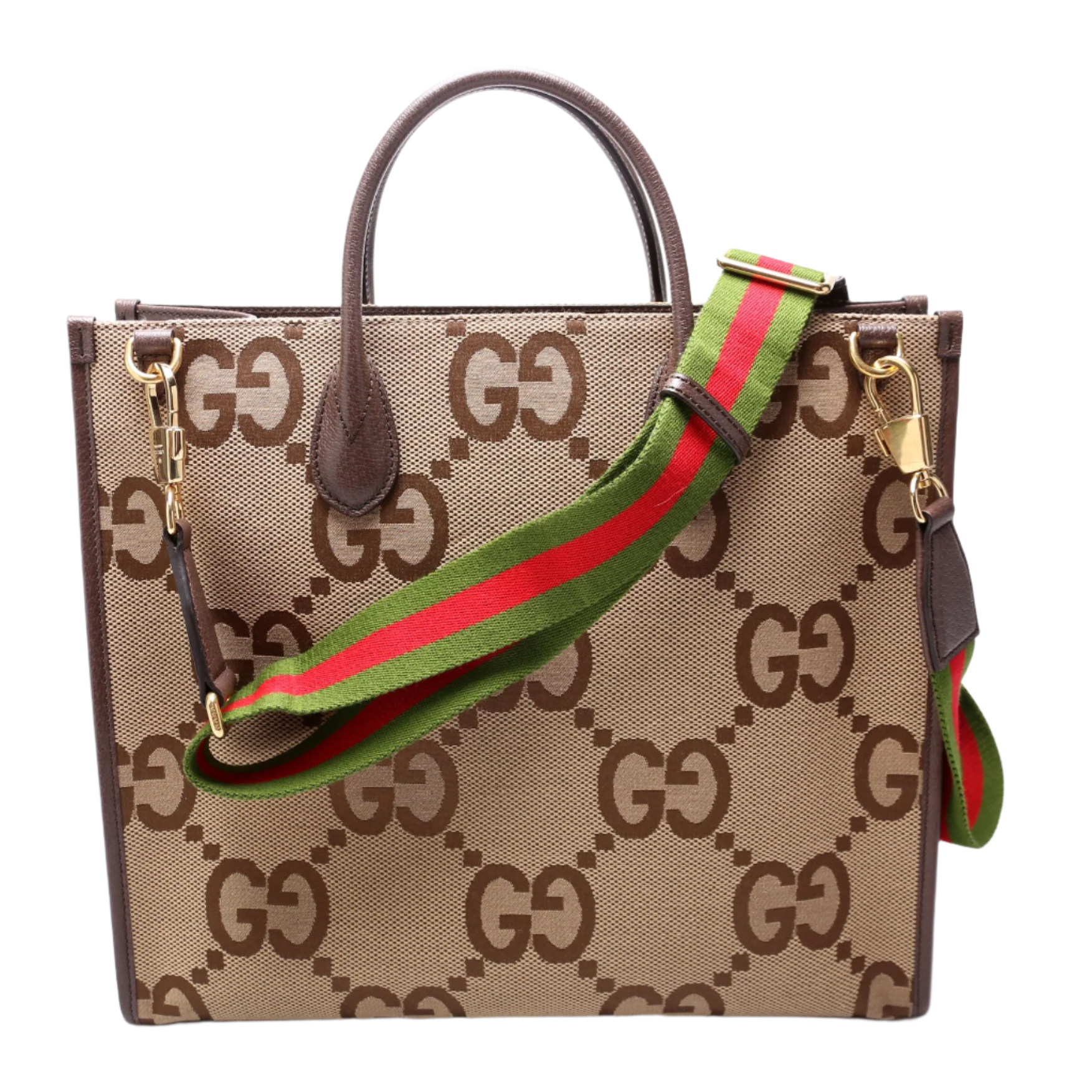 Let our smart tool help you find similar products you might like.The Gucci Jumbo GG Canvas Tote Bag in beige showcases the brand’s iconic GG pattern with a spacious, stylish design. Perfect for everyday use, it combines practicality with timeless elegance.