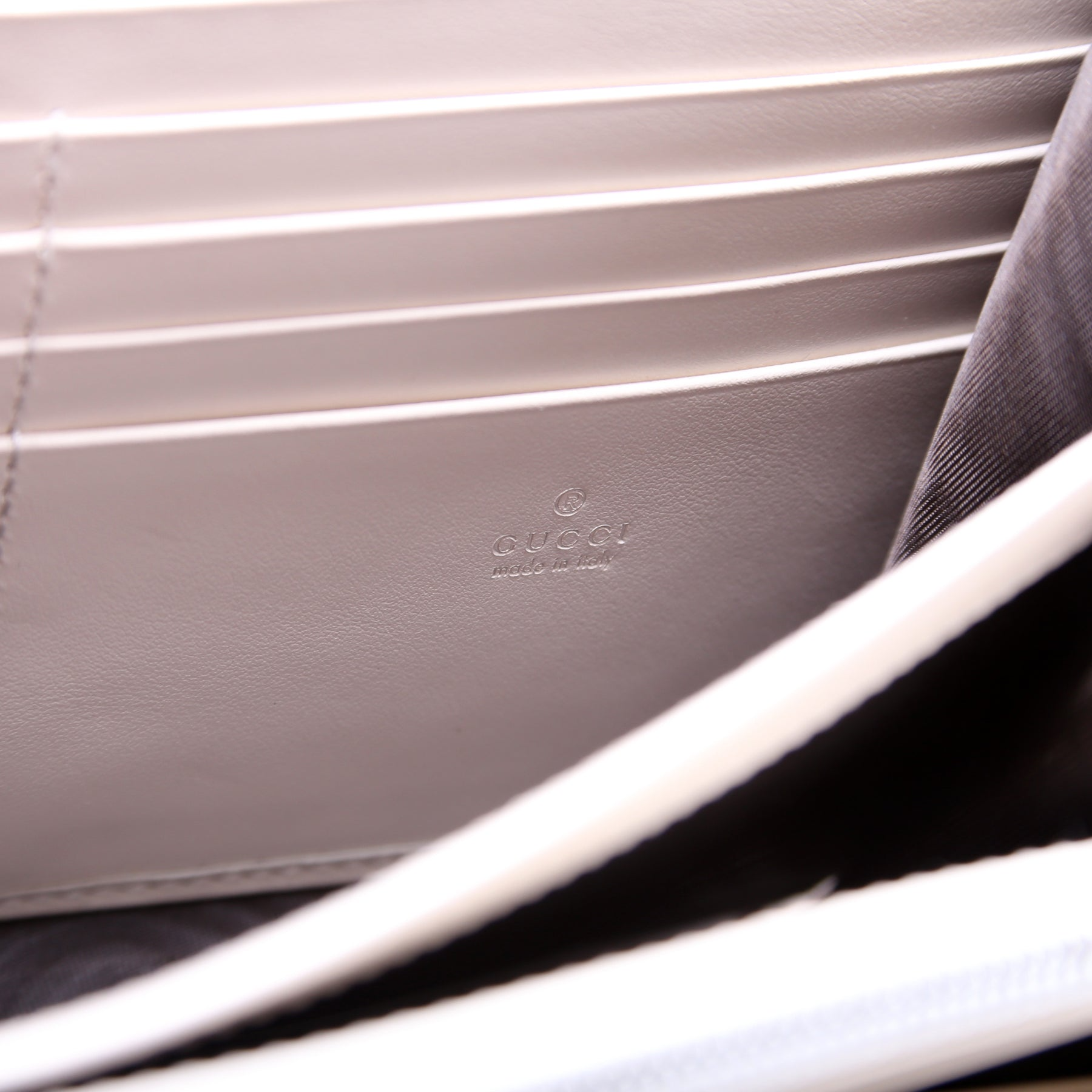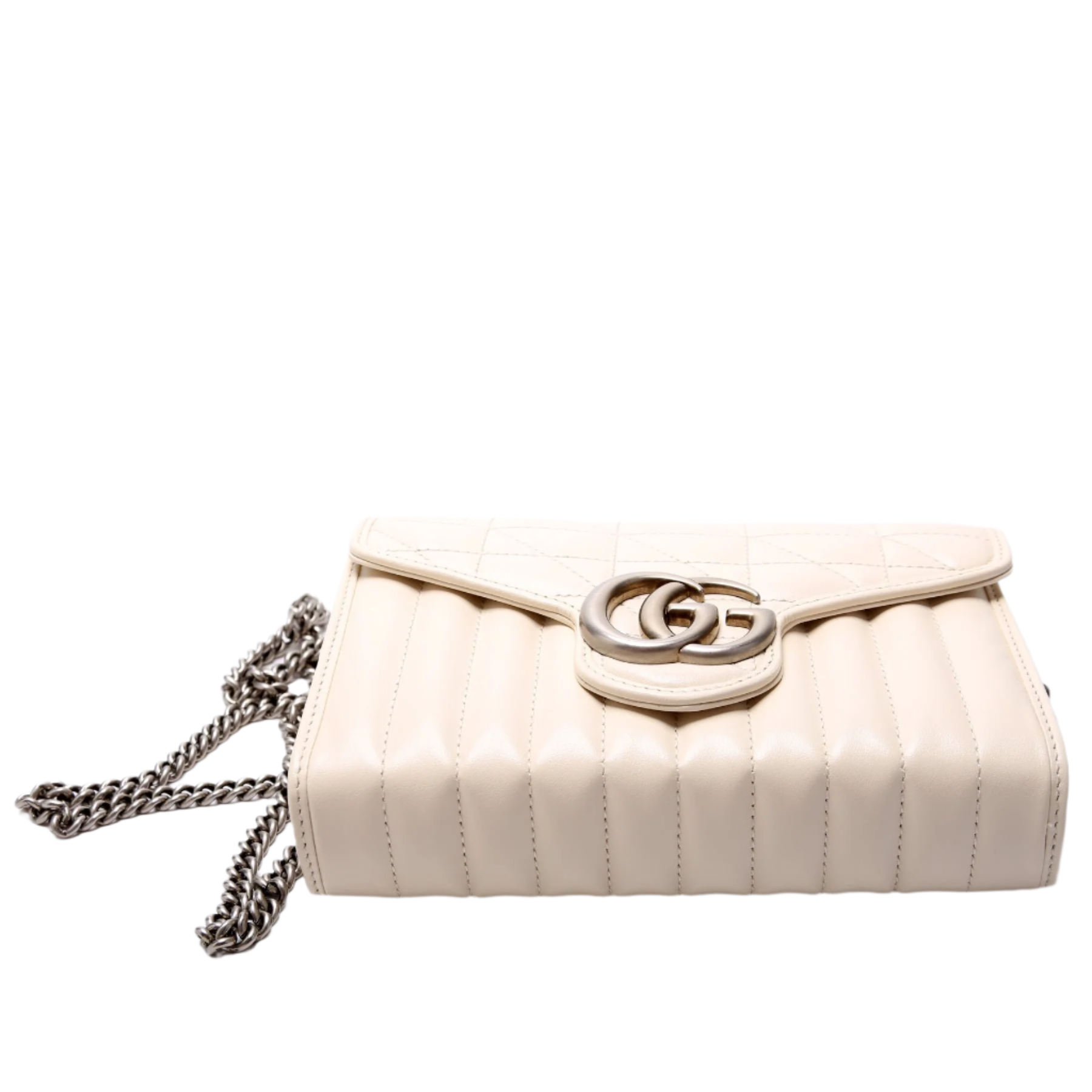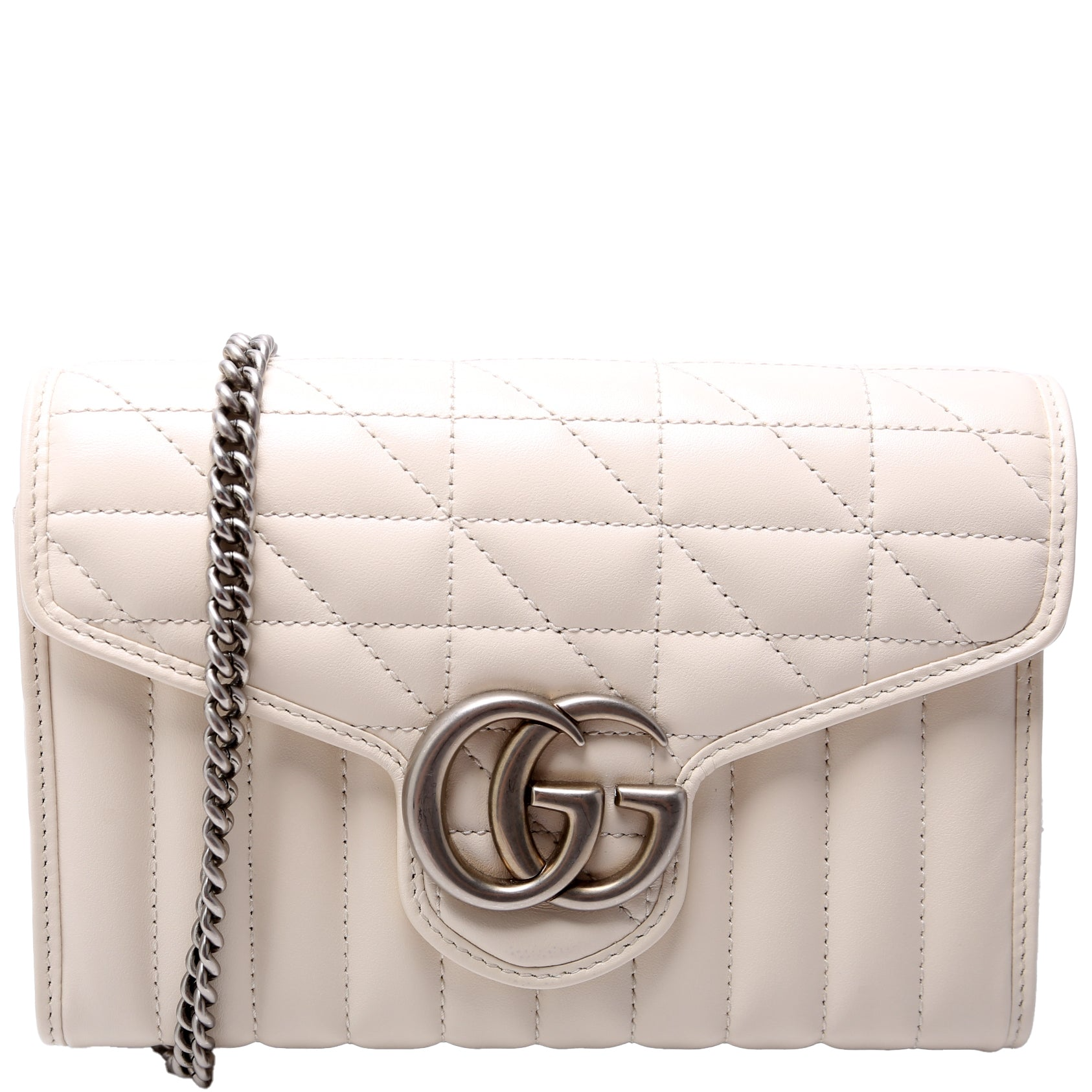 Let our smart tool help you find similar products you might like.The Gucci Marmont Leather Aria Chain Wallet in white features smooth leather and the iconic GG logo, offering a sophisticated, versatile accessory. A stylish piece that combines elegance with practicality for everyday luxury.