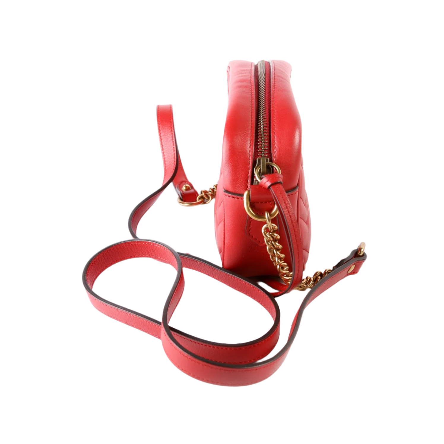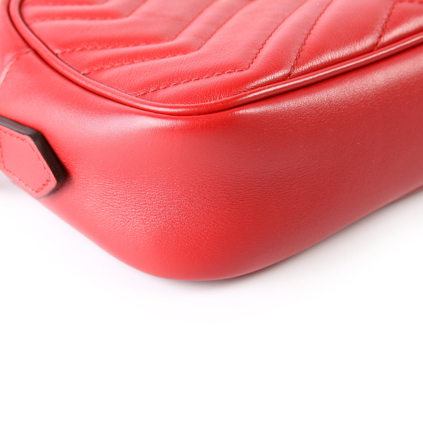 Let our smart tool help you find similar products you might like.The Gucci Marmont Leather Mini Camera Bag in red is a stylish, compact accessory that effortlessly blends sophistication with everyday functionality. Its signature GG emblem and soft leather make it a must-have for any luxury enthusiast.