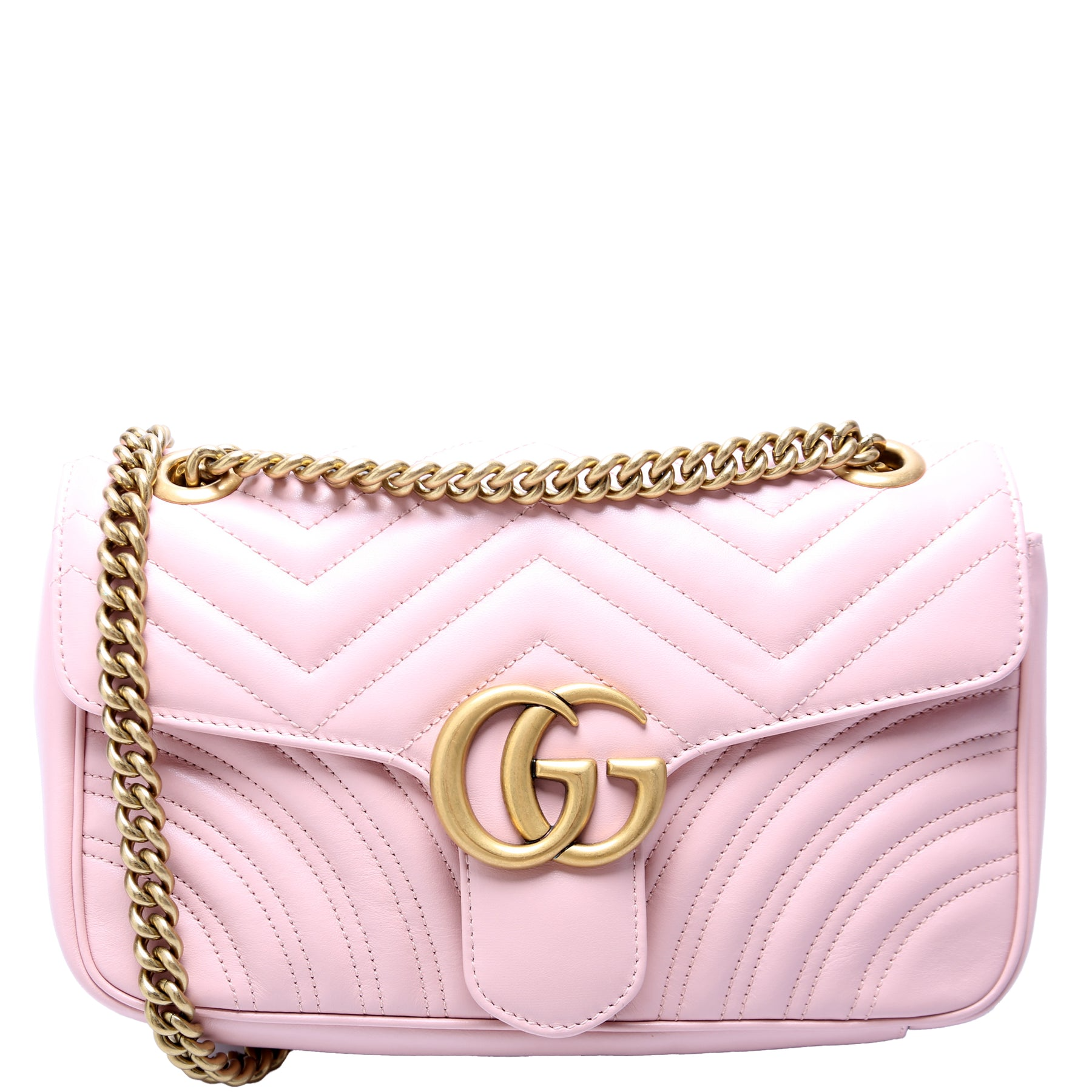 Let our smart tool help you find similar products you might like.Add a pop of color to your collection with the Gucci Marmont Small Leather Shoulder Bag in Pink, featuring the iconic GG logo and a quilted design. This luxurious piece combines timeless elegance with modern style, perfect for any occasion.
