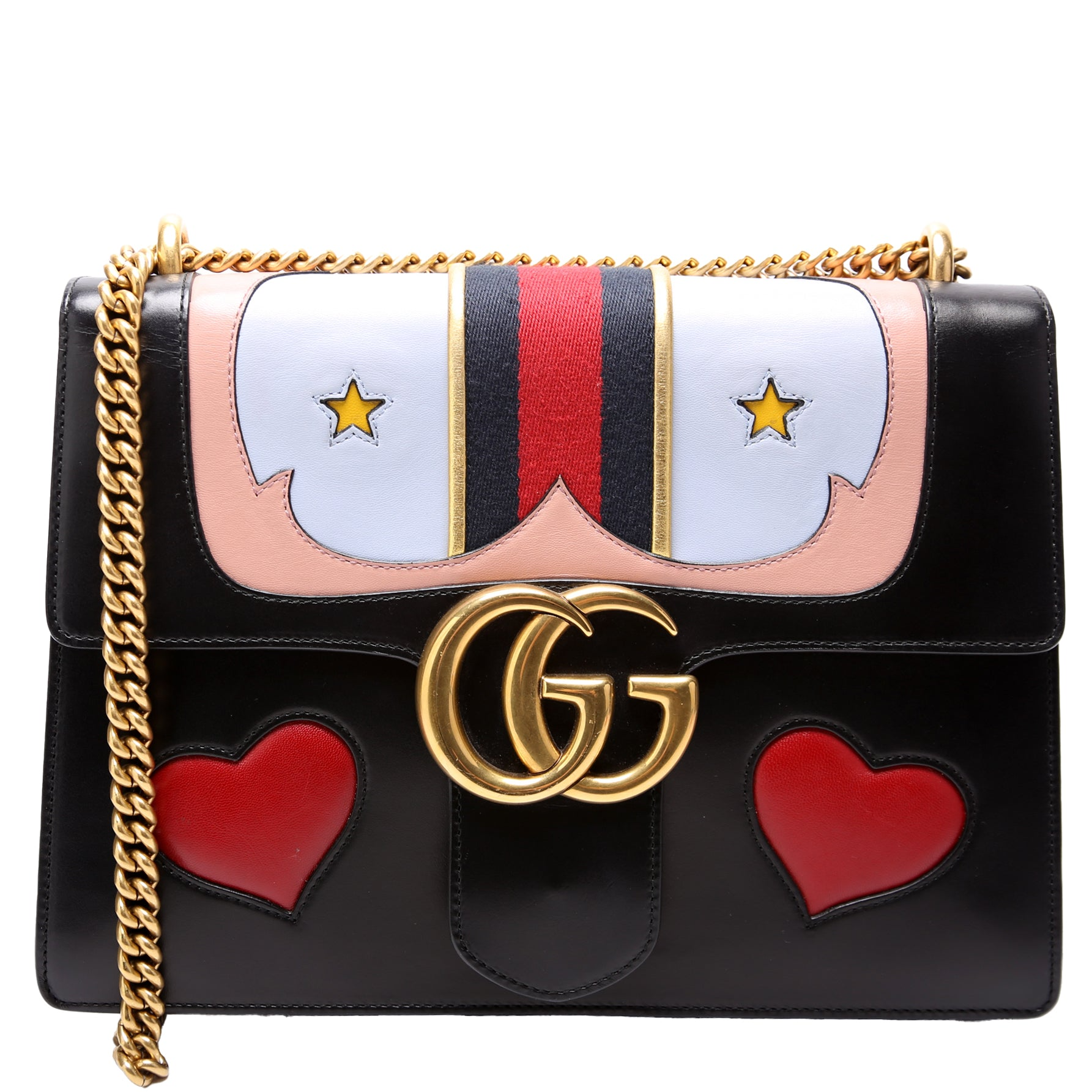 Let our smart tool help you find similar products you might like.The Gucci Marmont Web Heart Leather Medium Shoulder Bag in black features a chic heart motif and the signature web stripe for a stylish and distinctive look. A versatile and elegant accessory, perfect for adding a touch of luxury to any outfit.
