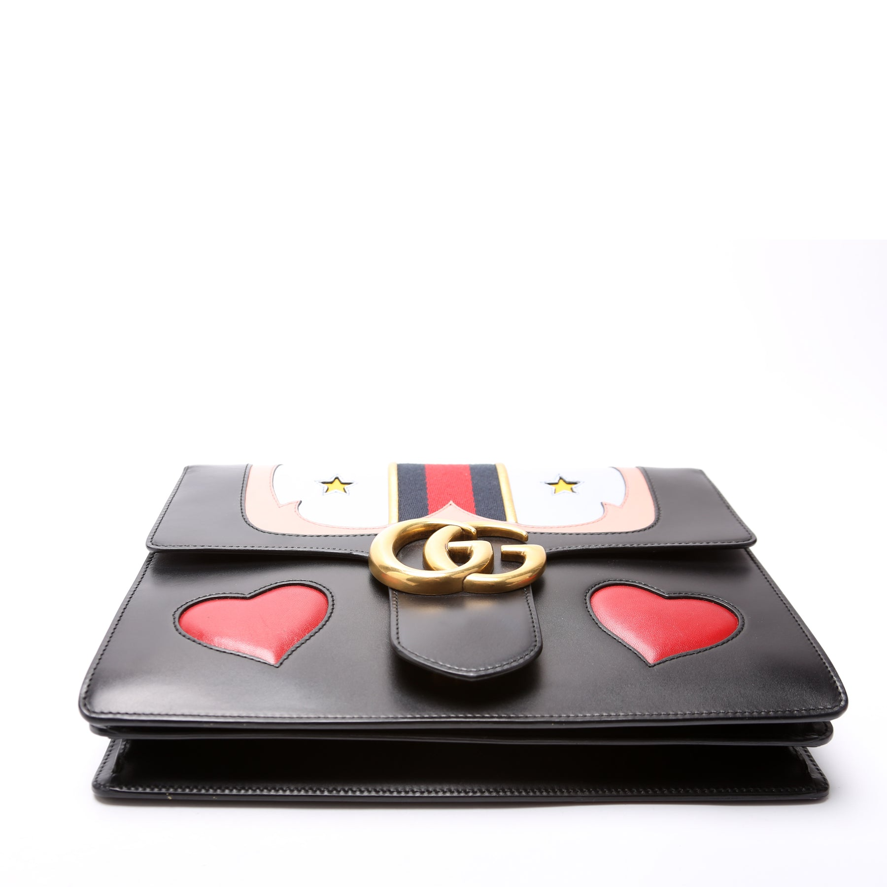 Marmont Web Heart Leather Medium Shoulder Bag Black
