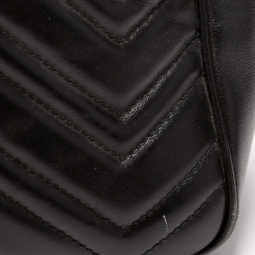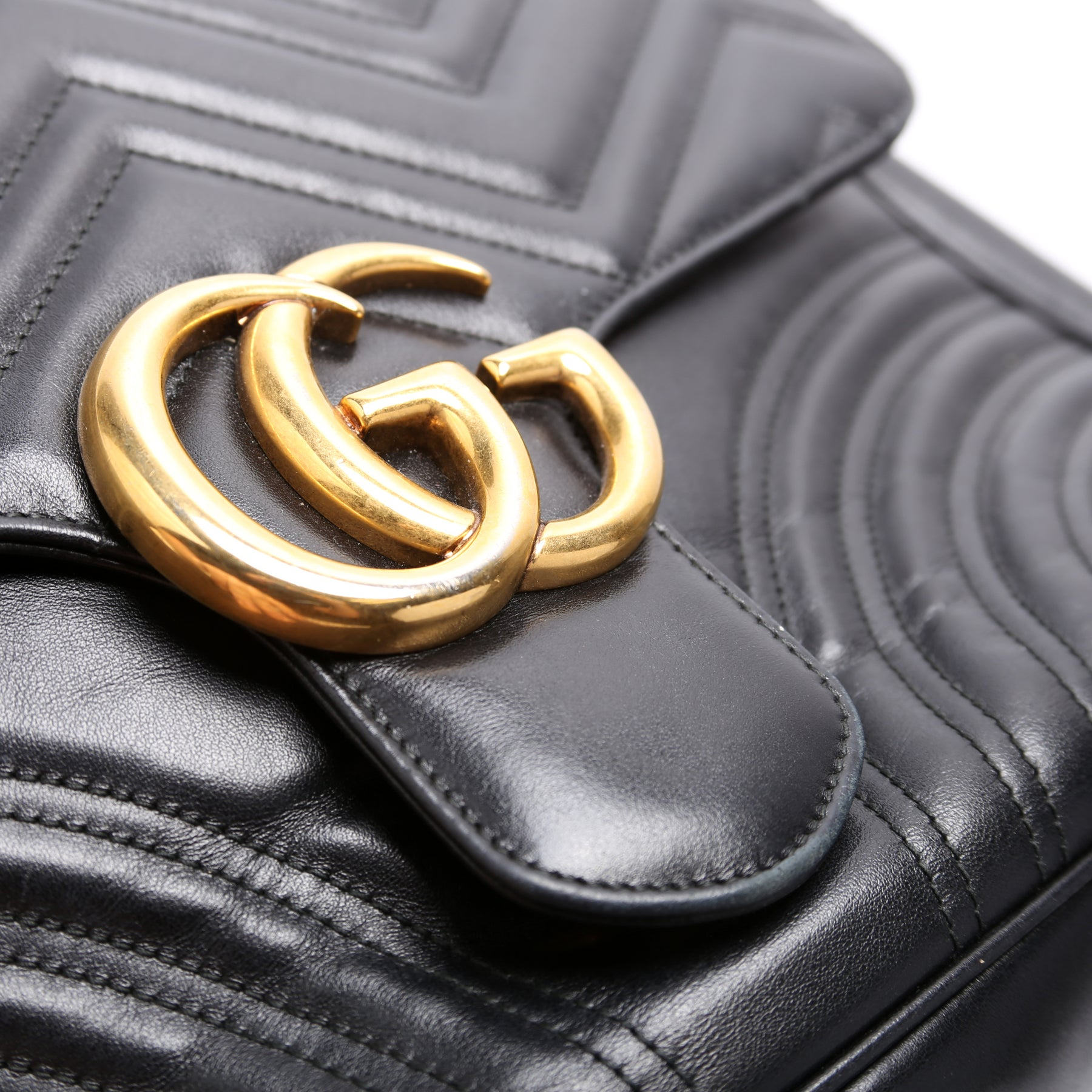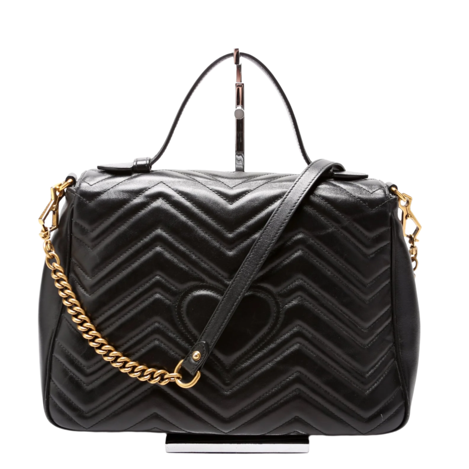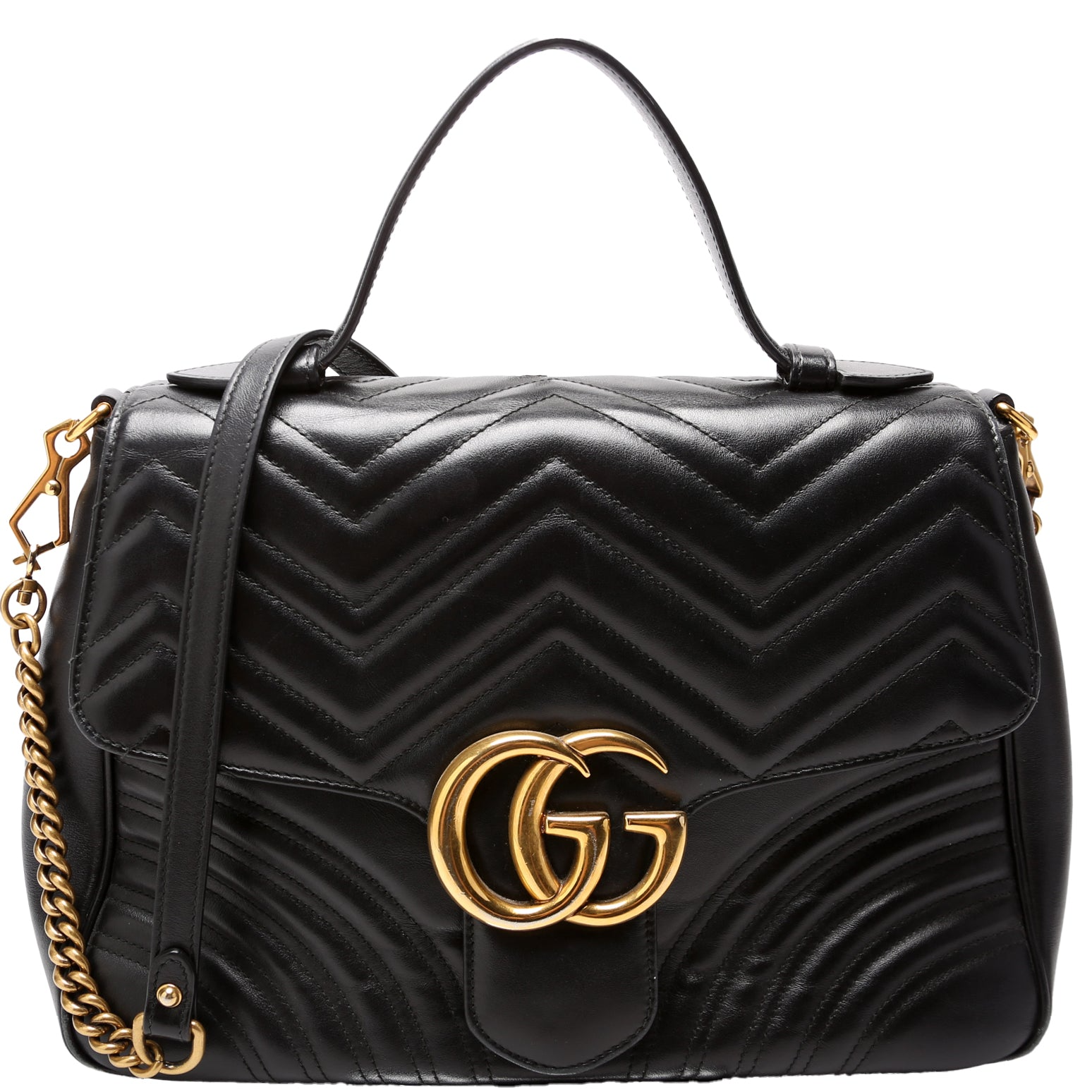 Let our smart tool help you find similar products you might like.The Gucci Marmont Leather Top Handle Bag in black features a sleek, structured design with the iconic GG logo and luxurious leather craftsmanship. This timeless bag offers both sophistication and practicality, perfect for day-to-night wear.