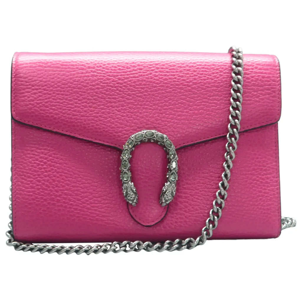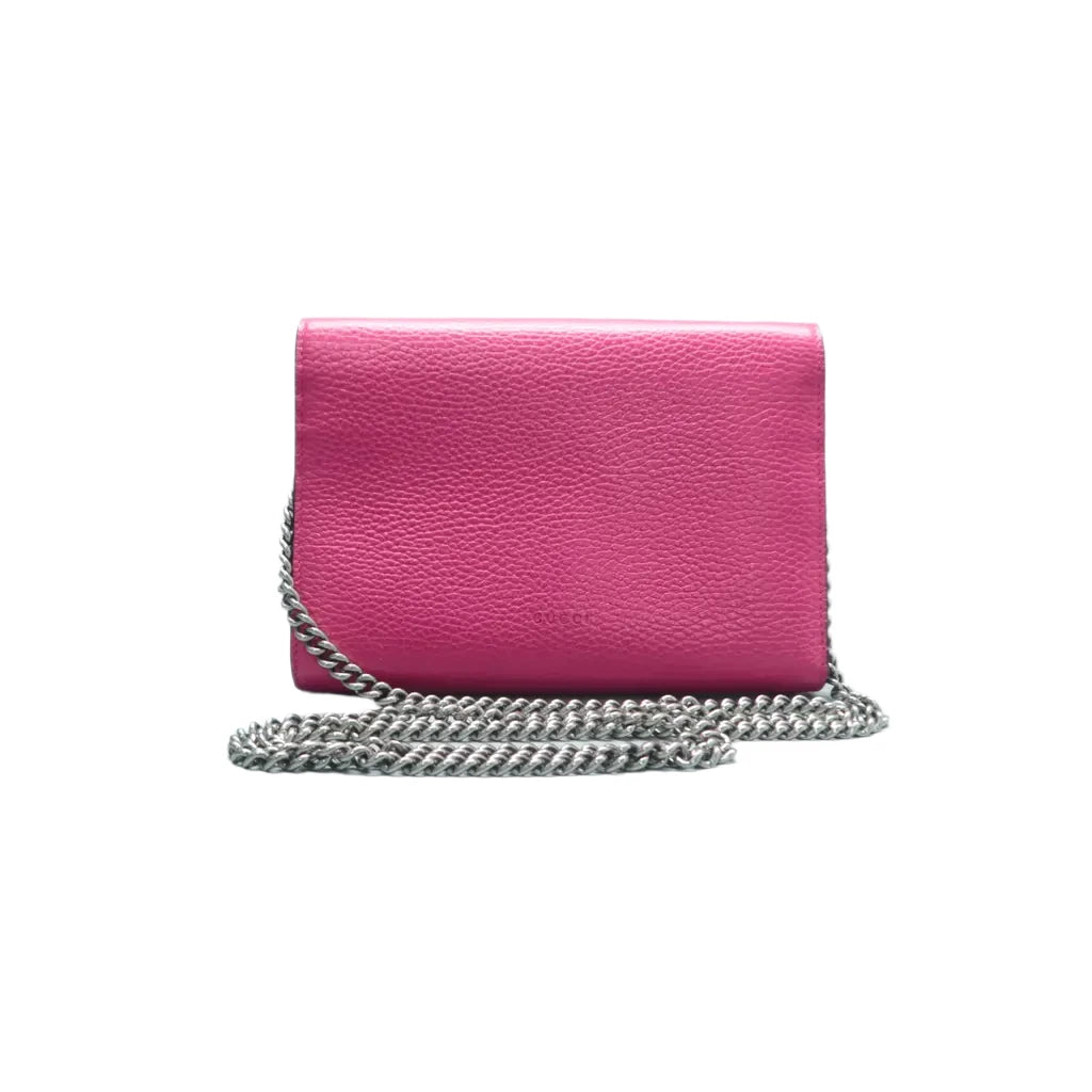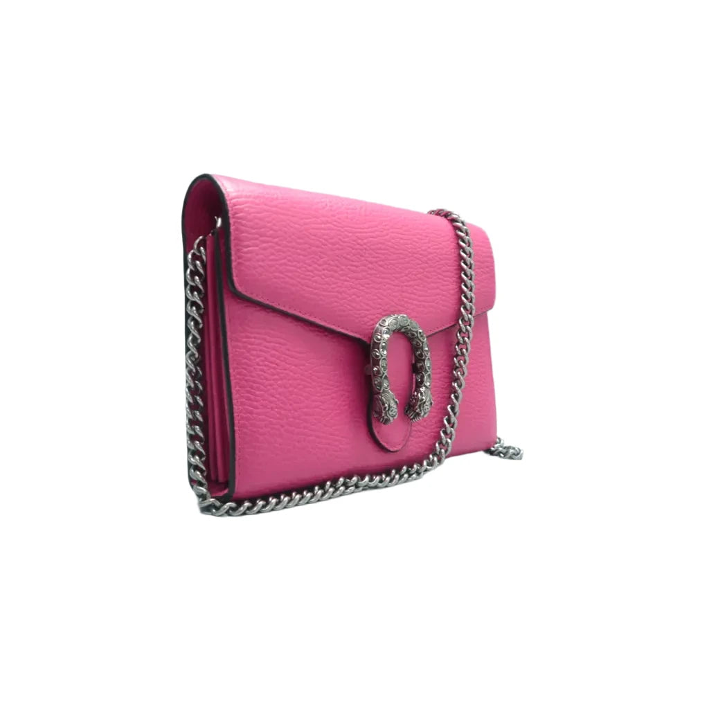 Let our smart tool help you find similar products you might like.Elevate your accessory game with the Gucci Mini Dionysus chain wallet in sleek pink calfskin. This chic piece combines luxury and practicality, featuring the iconic tiger head closure for a distinctive touch