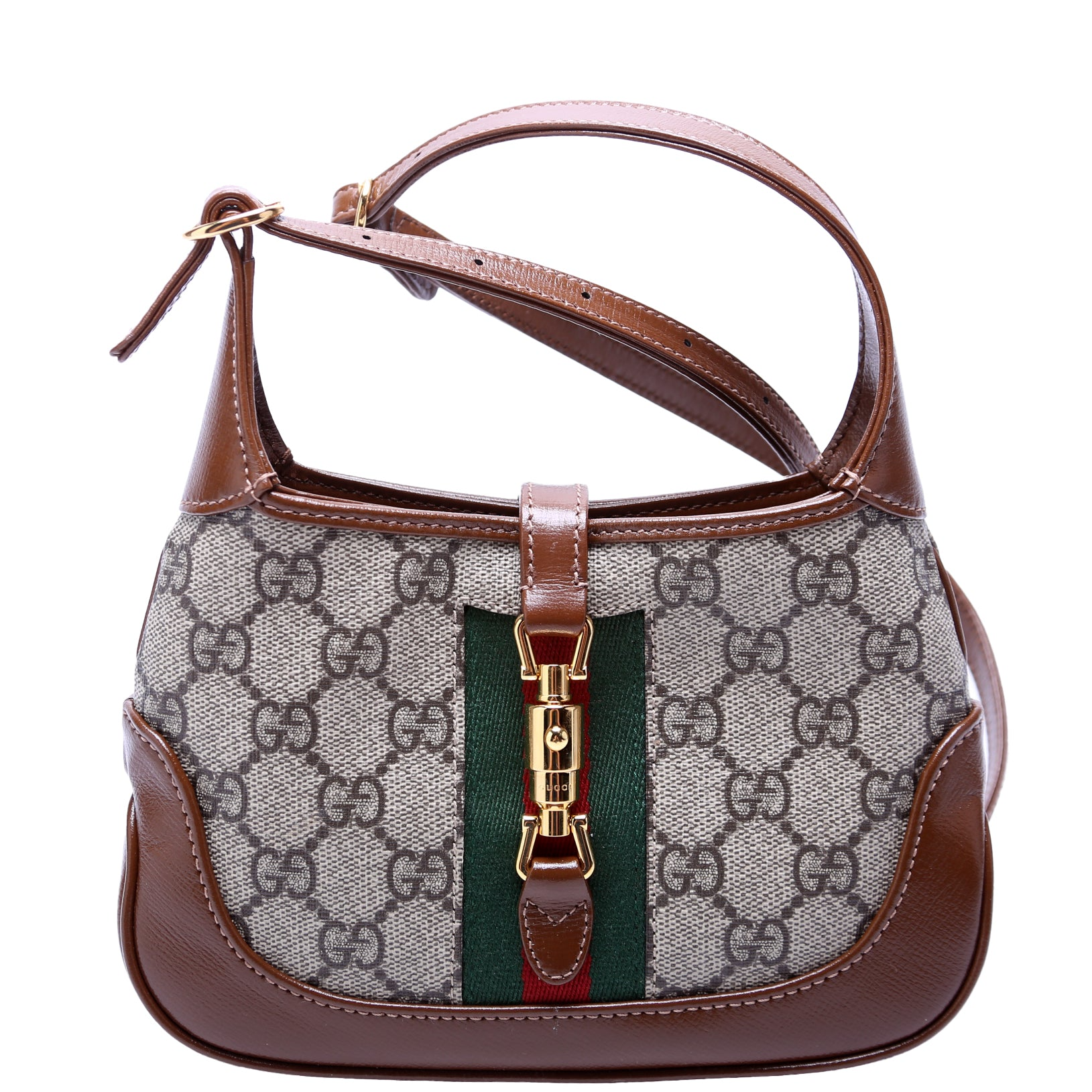 Let our smart tool help you find similar products you might like.This Gucci Mini Jackie 1961 Canvas Hobo Bag in brown features a sleek, compact design with the signature Jackie locking mechanism. Crafted from durable canvas, it combines timeless style with modern functionality for everyday wear.