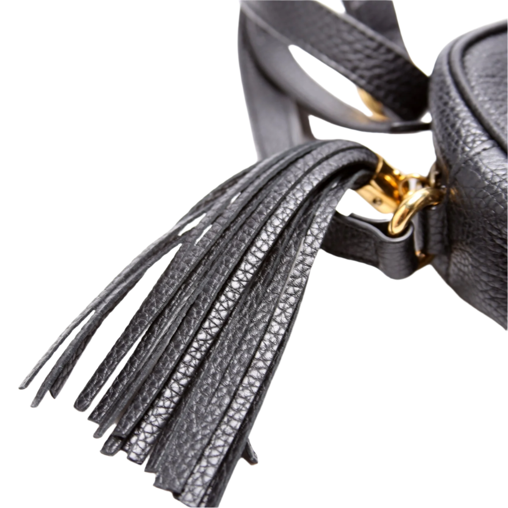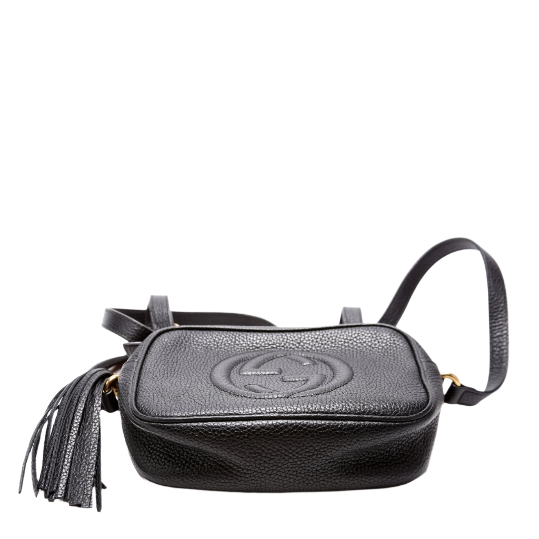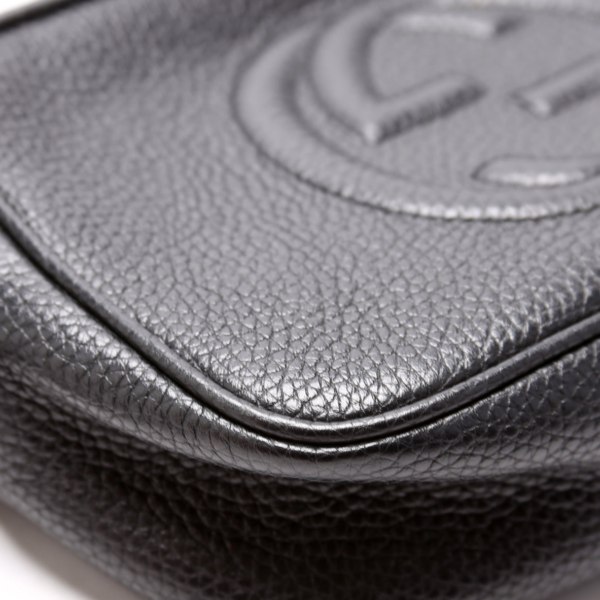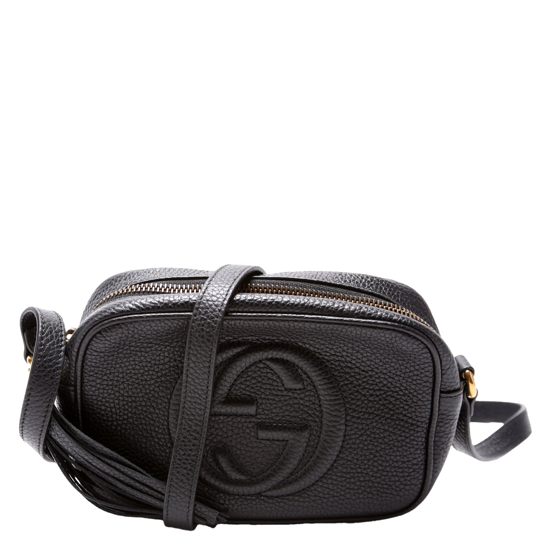 Let our smart tool help you find similar products you might like.This Gucci Mini Soho Disco crossbody bag is crafted from soft black leather and features the iconic embossed GG logo. Its compact size and adjustable strap make it a stylish and practical choice for everyday wear.