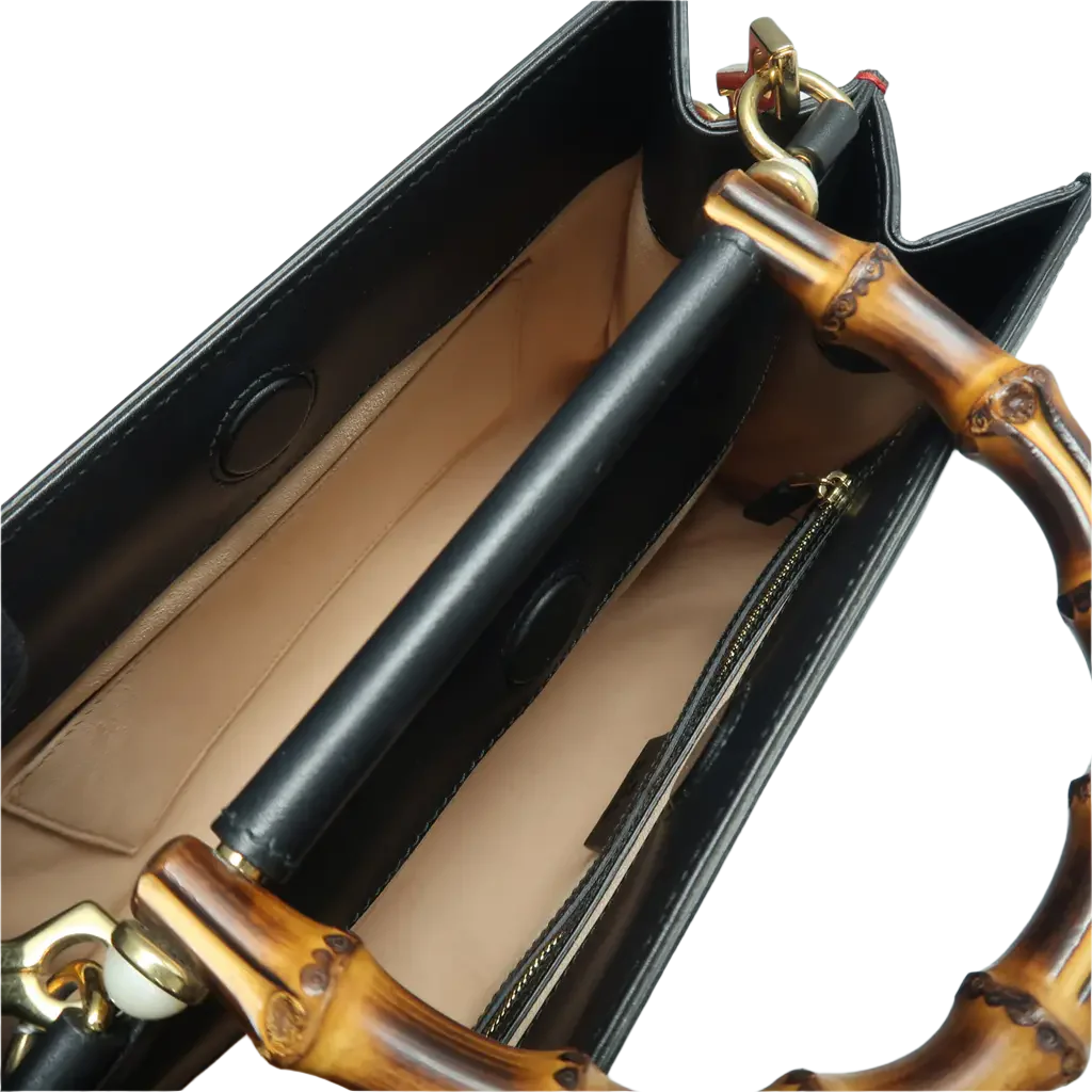 Let our smart tool help you find similar products you might like.This pre-loved Gucci Nymphaea Leather Satchel Bag in elegant black features a sleek, structured design with luxurious leather and signature details. Perfect for both day and evening, it offers both style and practicality in one sophisticated accessory.