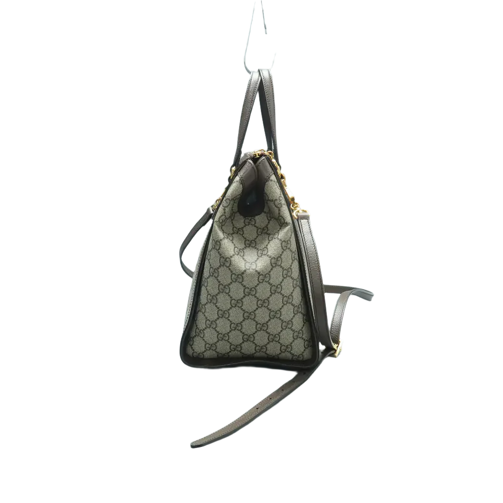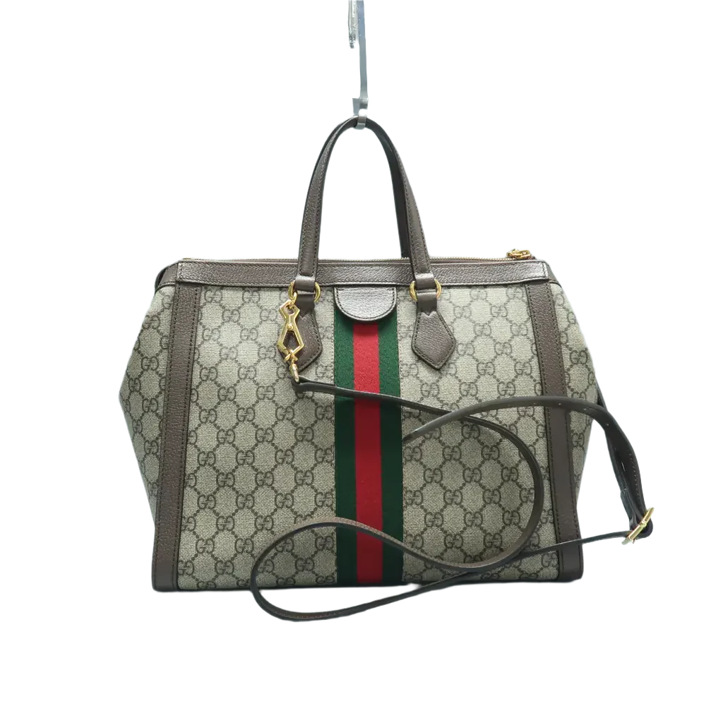Let our smart tool help you find similar products you might like.The GUCCI Ophidia Canvas Satchel Bag in brown features the iconic GG Supreme canvas with leather accents and the brand’s signature web stripe detail. Its timeless design offers both elegance and practicality, making it a versatile addition to any wardrobe.