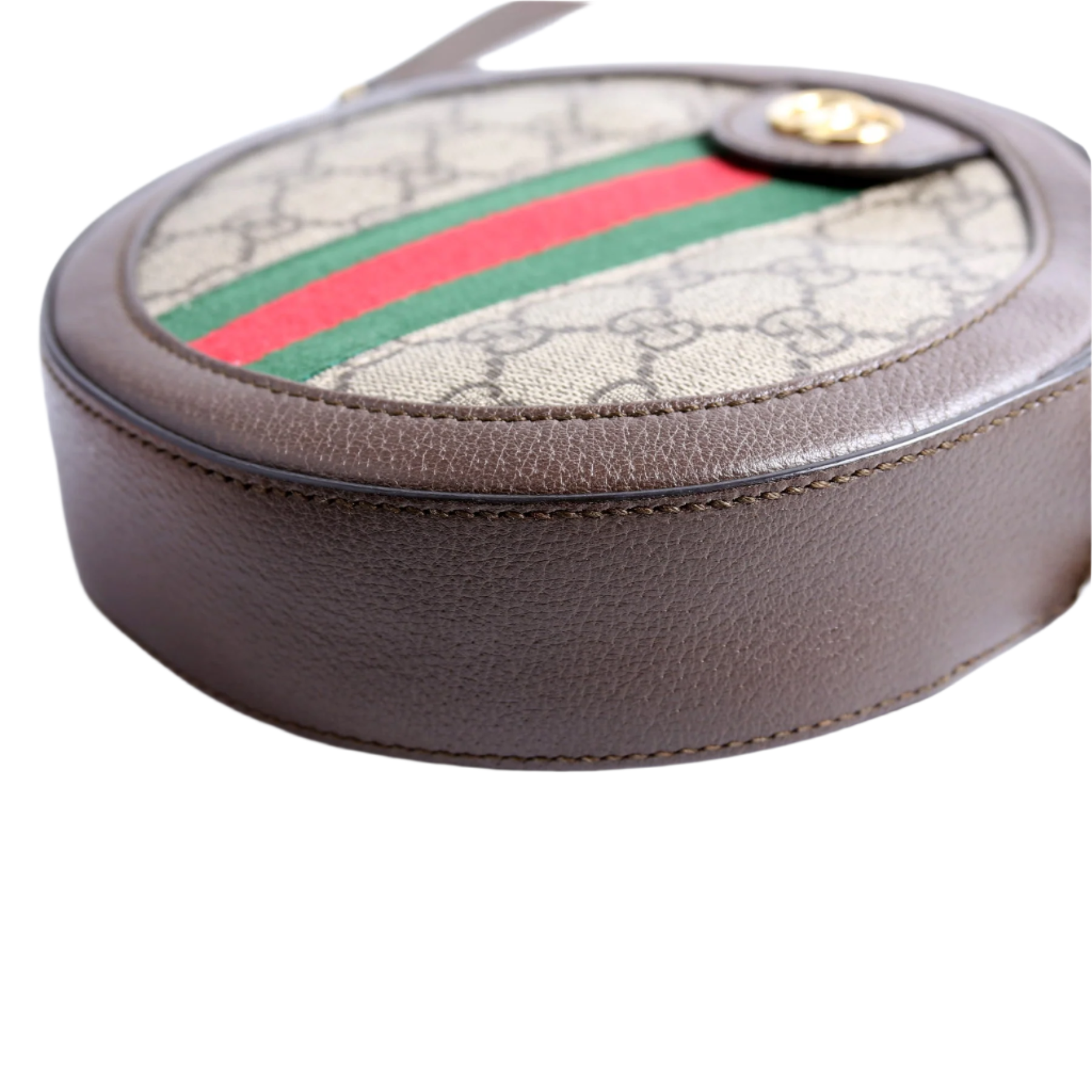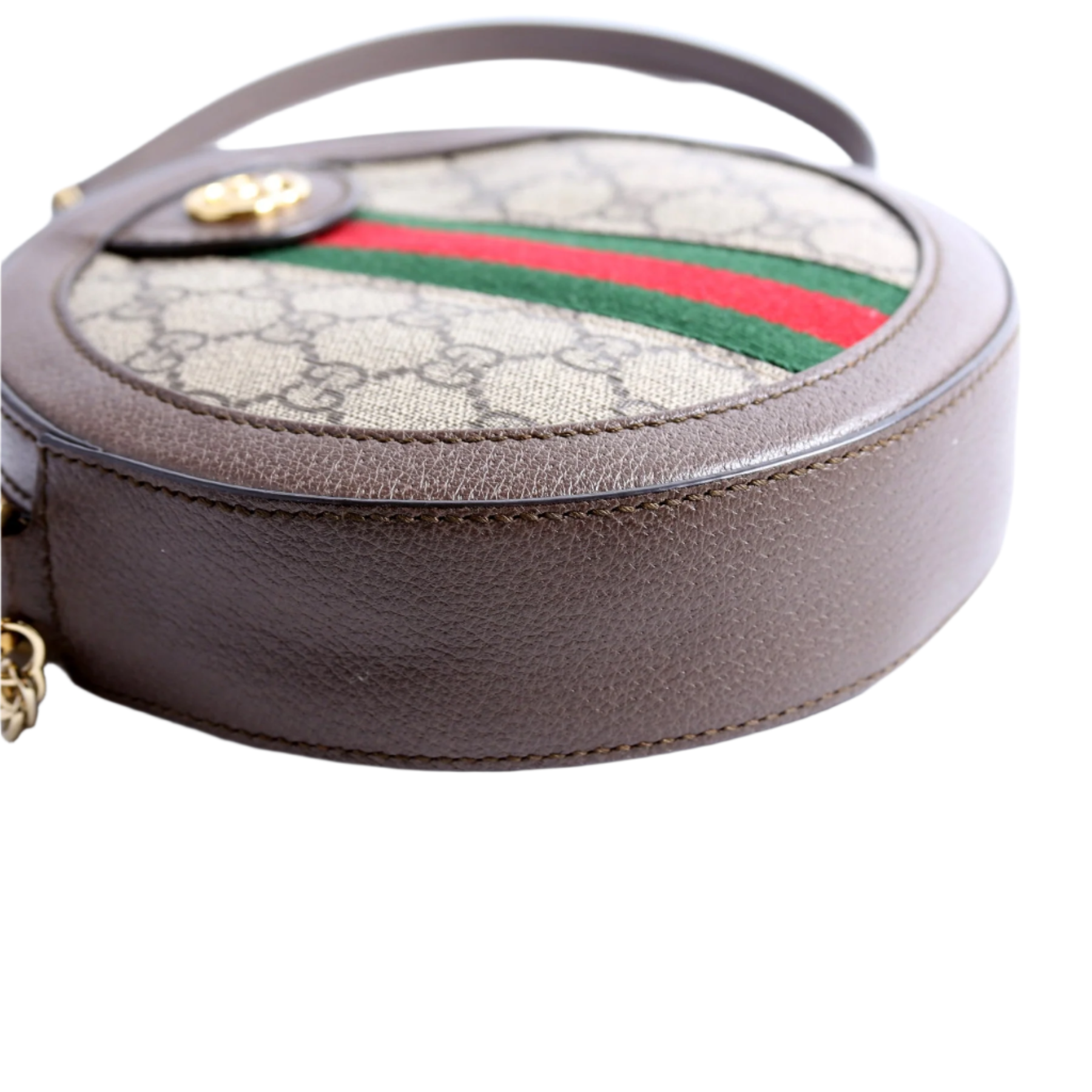 Let our smart tool help you find similar products you might like.The Gucci Ophidia Leather Round Small Crossbody Bag in brown combines the brand’s signature web stripe with luxurious leather for a chic, compact design. A stylish and versatile accessory, perfect for elevating any outfit with a touch of luxury.