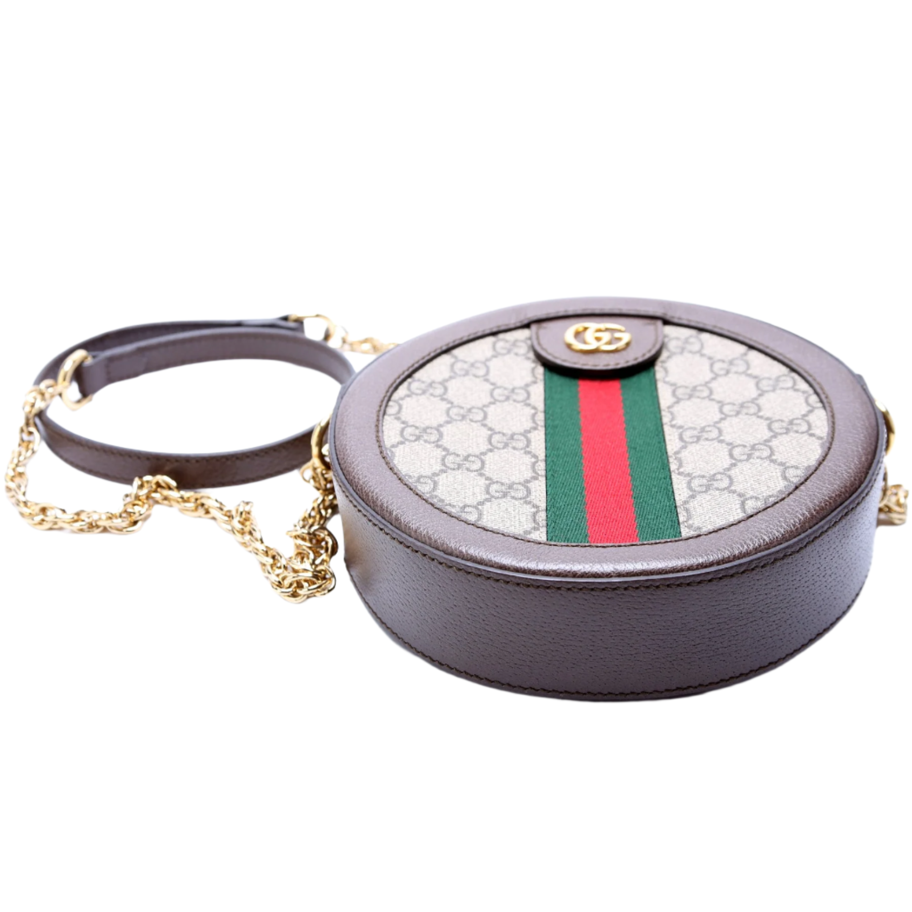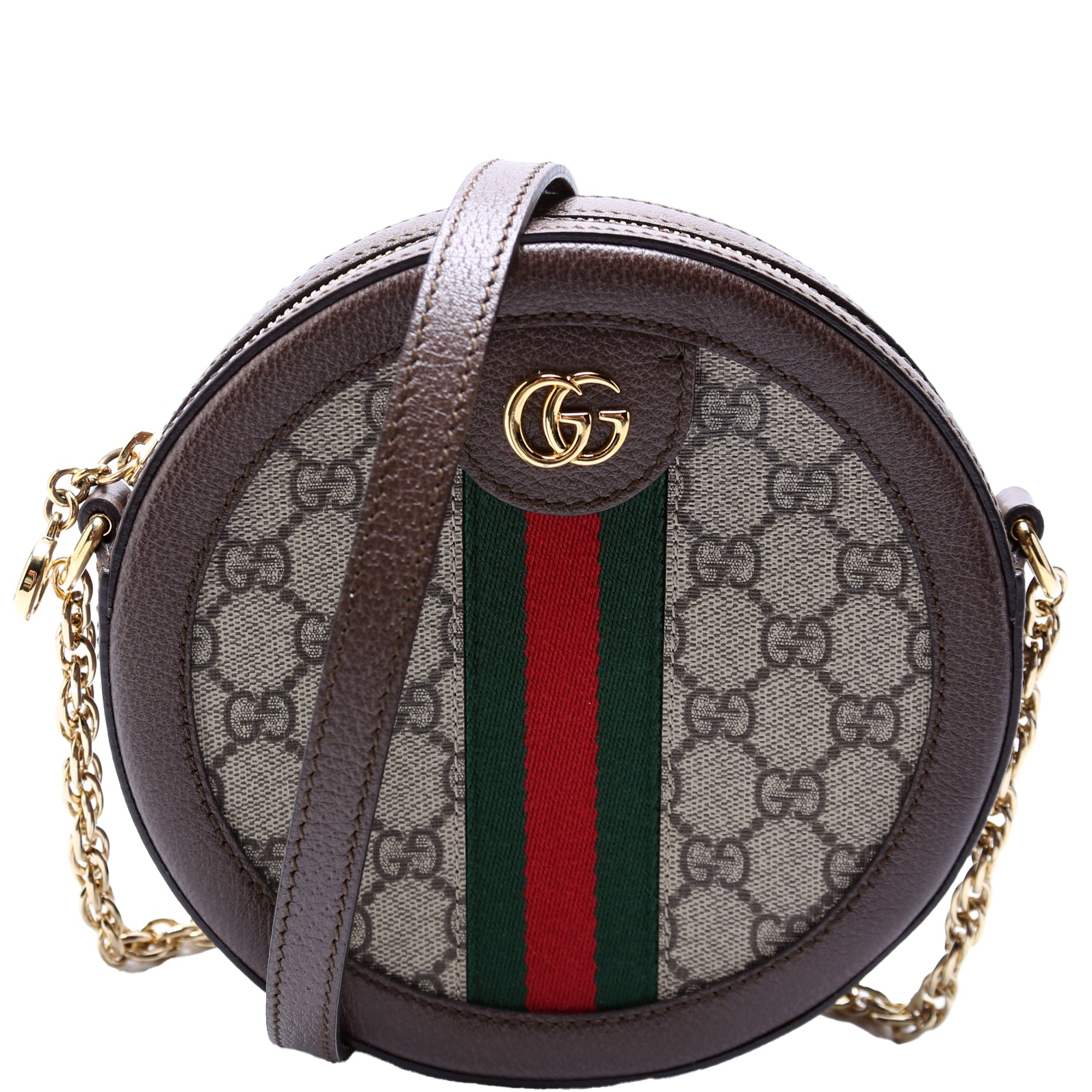 Let our smart tool help you find similar products you might like.This Gucci Ophidia small crossbody bag is crafted from durable canvas in brown, featuring the iconic Web stripe and GG logo. Its round shape and compact design make it a chic and functional accessory for any occasion.