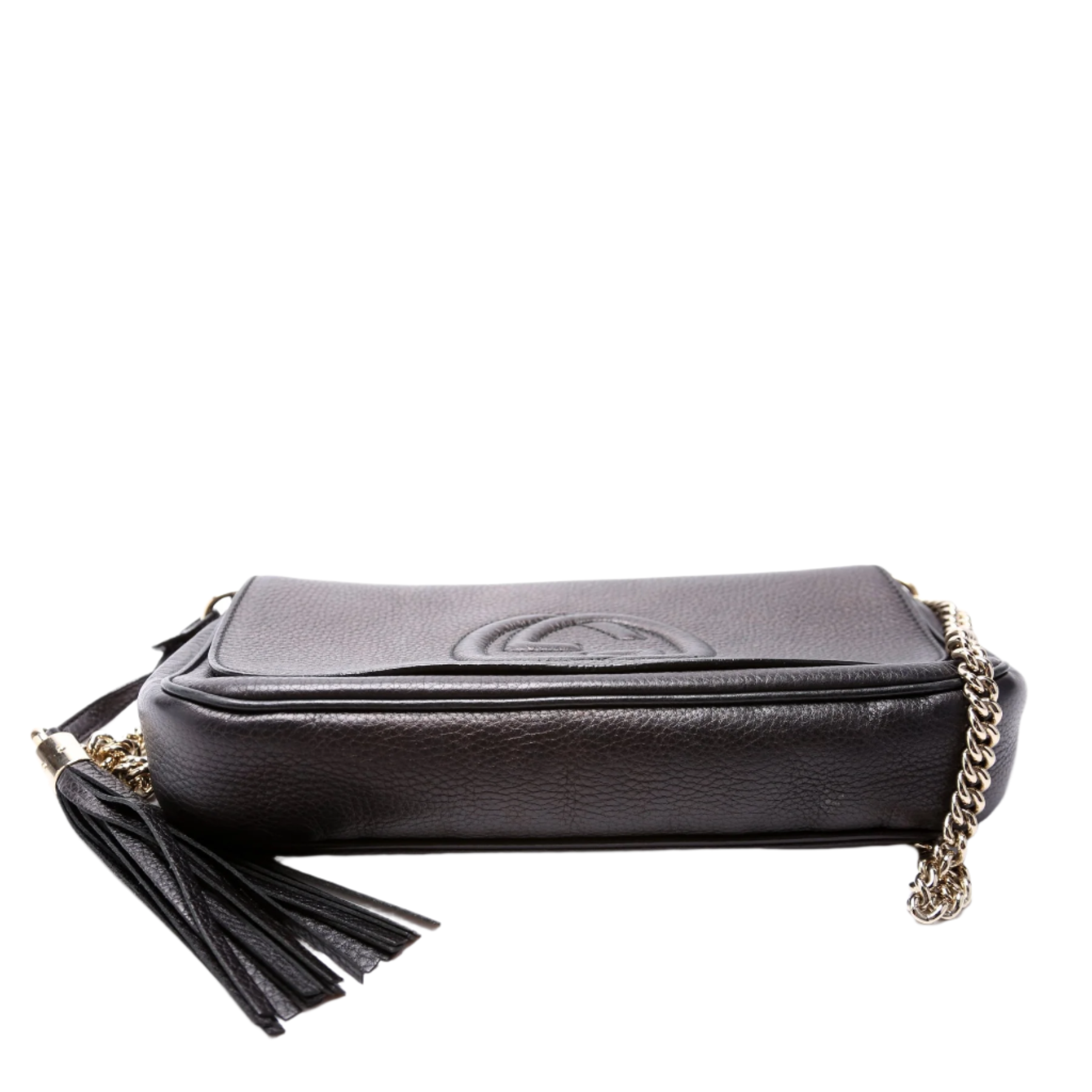 Let our smart tool help you find similar products you might like.The Gucci Soho Chain Xbody Medium Leather Crossbody Bag in black features the signature GG embossed leather and a sleek chain strap for a stylish, functional design. This versatile crossbody bag offers both elegance and practicality for everyday wear.