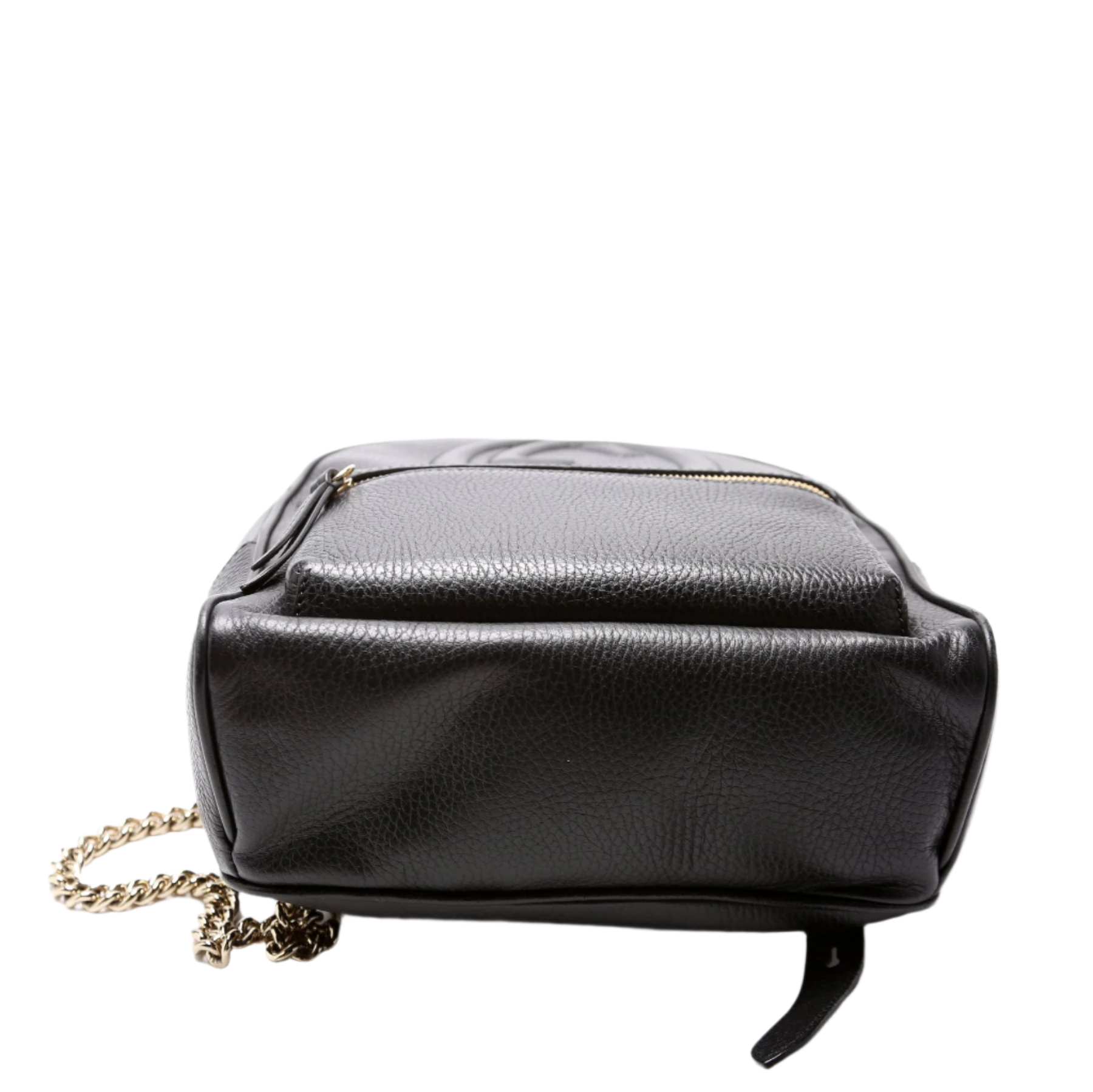 Let our smart tool help you find similar products you might like.The Gucci Soho Leather Backpack Bag in black offers a stylish and practical design, crafted from soft leather with the iconic GG logo embossed on the front. Its spacious interior and adjustable straps make it a versatile choice for both casual and chic outings.