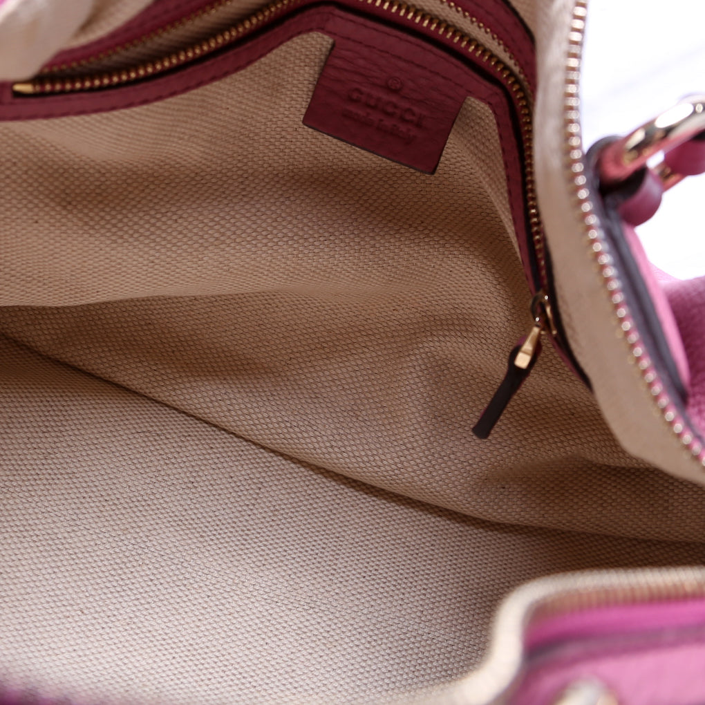 Let our smart tool help you find similar products you might like.The Gucci Soho Leather Boston Bag in purple offers a vibrant pop of color with its smooth leather exterior and spacious, structured design. Its timeless style and functional interior make it a must-have accessory for everyday elegance.