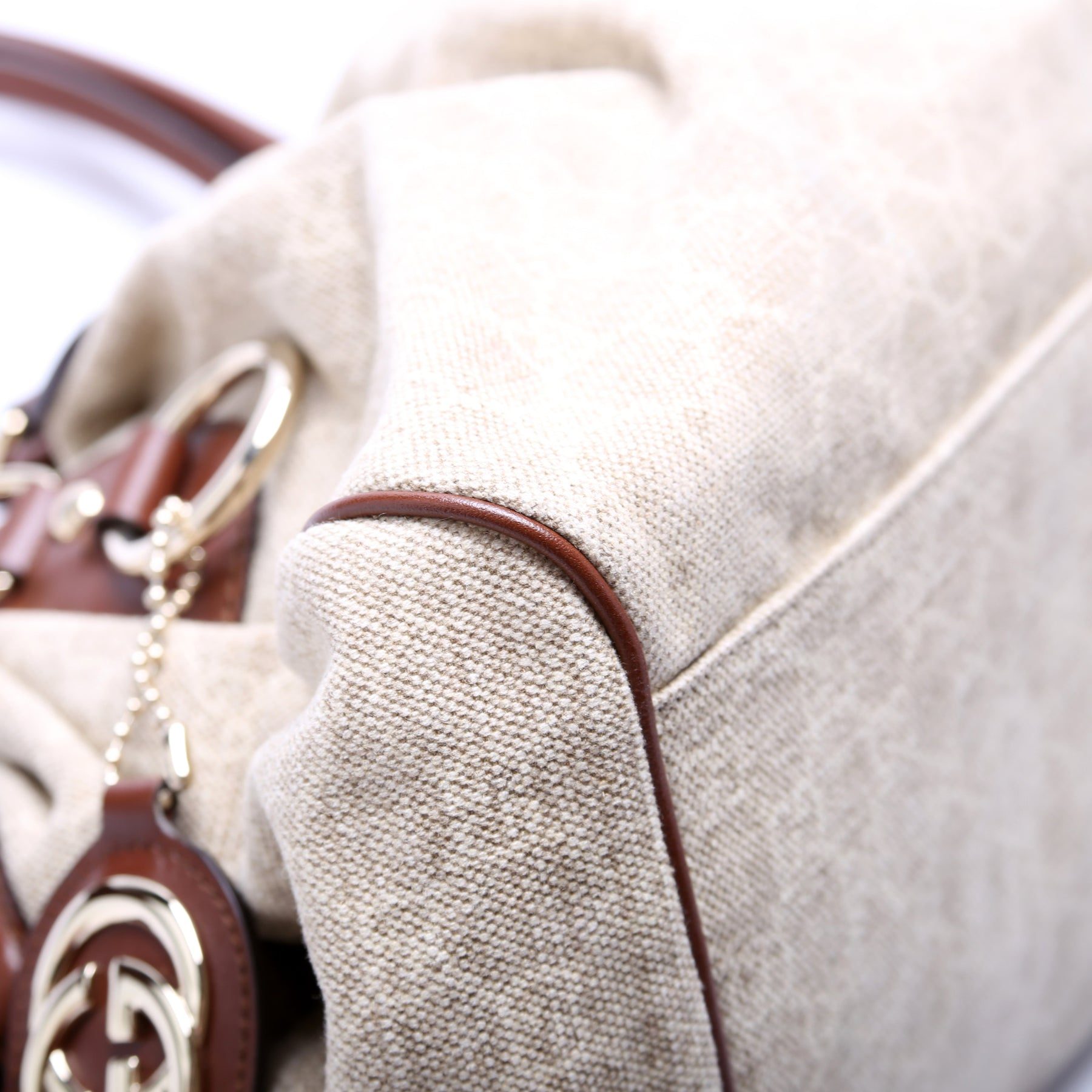 Let our smart tool help you find similar products you might like.The Gucci Sukey Canvas Boston Bag in beige features the signature GG monogram with a chic, structured design. A spacious and elegant accessory, perfect for adding a touch of luxury to your everyday style.
