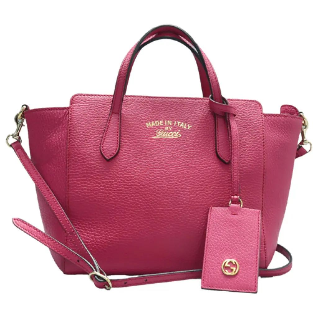 Let our smart tool help you find similar products you might like.The GUCCI Swing Leather Satchel in vibrant fuchsia adds a pop of color to any wardrobe, featuring sleek leather craftsmanship and a spacious, structured design. A chic and versatile accessory that effortlessly combines style with function.
