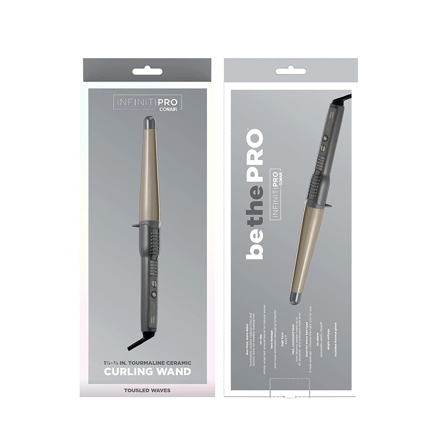 INFINITIPRO BY CONAIR Tourmaline Ceramic 1 1/4-Inch to 3/4-Inch Curling Wand, Tapered wand produces beachy waves CS1002