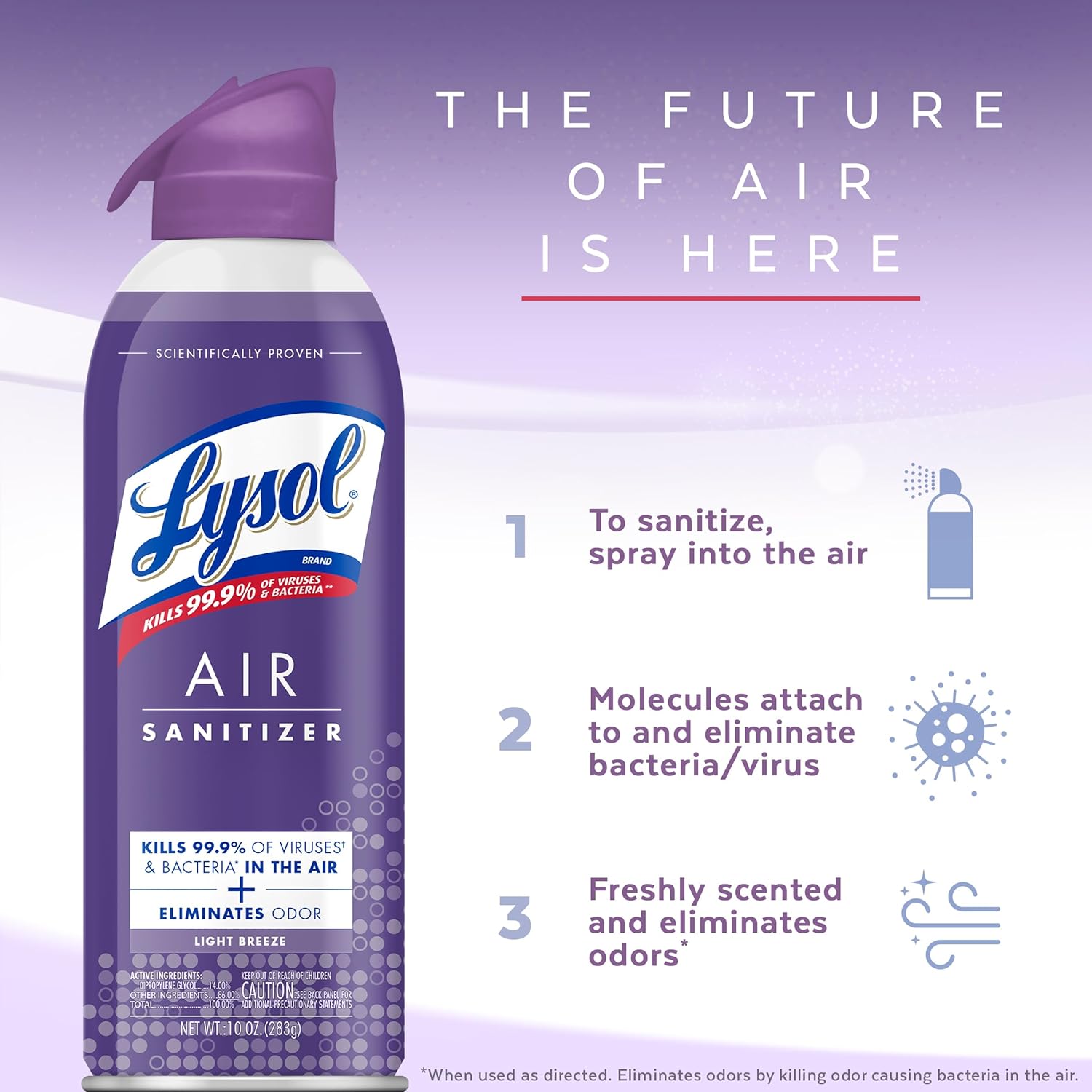 Lysol Air Sanitizer Spray, For Air Sanitization and Odor Elimination, Light Breeze, 10 Fl. Oz